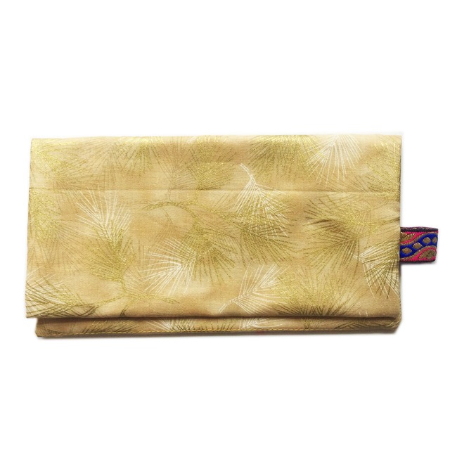 ★240-spec 金箔の松葉の模様のファブリック。和風のようですがアメリカンデザインファブリックです。控えめゴージャスなので、POPにするのには少し難儀しますが考えるのが楽しい布。 ・中布 赤ドット/チラ見えライン 桃色/インナー 紅赤 piott sawing club ハンドメイド布財布を見ていただいてありがとうございます。 とにかく軽い! ファスナーがないので自由な厚みで使える、フレキシブルであなた次第な、カード収納 ヌノサイフ。 国内、海外の問屋や、インポートで取り寄せたデッドストックの布を使って、華やかでキッチュに、piottのテイストでハンドメイドしました。 軽くて小粋な、シンプルで使いやすい布の札入れです。お薬手帳、へそくり管理にも。 ◆すべてオリジナル、家庭用ミシンで手作りの一点もの。既製品のクオリティの高さはありませんが、世界で一つの色合わせハンドメイドです。 ◆古いスカーフや、デッドストックの布は洗濯してから断裁しています。 ◆レシートやカード類(16枚)が綺麗に収納されるカードフォルダー二枚添付します。(現在のインナーのカードホルダーは「株式会社ハピラ」さんの製品。感謝!) ◆縫い目や内側の端の処理はサンプル写真をご覧ください。 ◆横195~200mm×縦205mm前後→二つ折りにすると天地110mm前後・お札が綺麗に収まるサイズ。サンプル写真をご覧ください。 ◆カードフォルダを取れば、小さくたたんで使うこともできます。 ◆くくりひもは私がいつも使っているような簡単なものを一本おつけします(ひもの種類はおまかせください) ‥‥‥‥‥‥‥‥‥‥ piott sawing club ハンドメイド布財布は……… カードをたくさん入れるとどんどん重くなってしまう皮財布に困って、軽い布の札入れをさがしたけれど…好きなデザインがまったく見つからない…。 思い立ってデッドストックの布で色とりどりに作って使っていたら、「かわいい!どこで買ったの?私も欲しい!」「こういう軽い財布を探していたよ」とたびたび言われるようになりましたので、sawing club で作ってお裾分けすることにしました。 商品ではありますが、心をこめた一点ものの手作りなので、手作り品質をご理解いただけ、自由自在なpiottのセンスを面白がって使ってくださる方のお手元に届くことを願っています。 【検索ワード】 松葉 金箔 植物 クリスマス