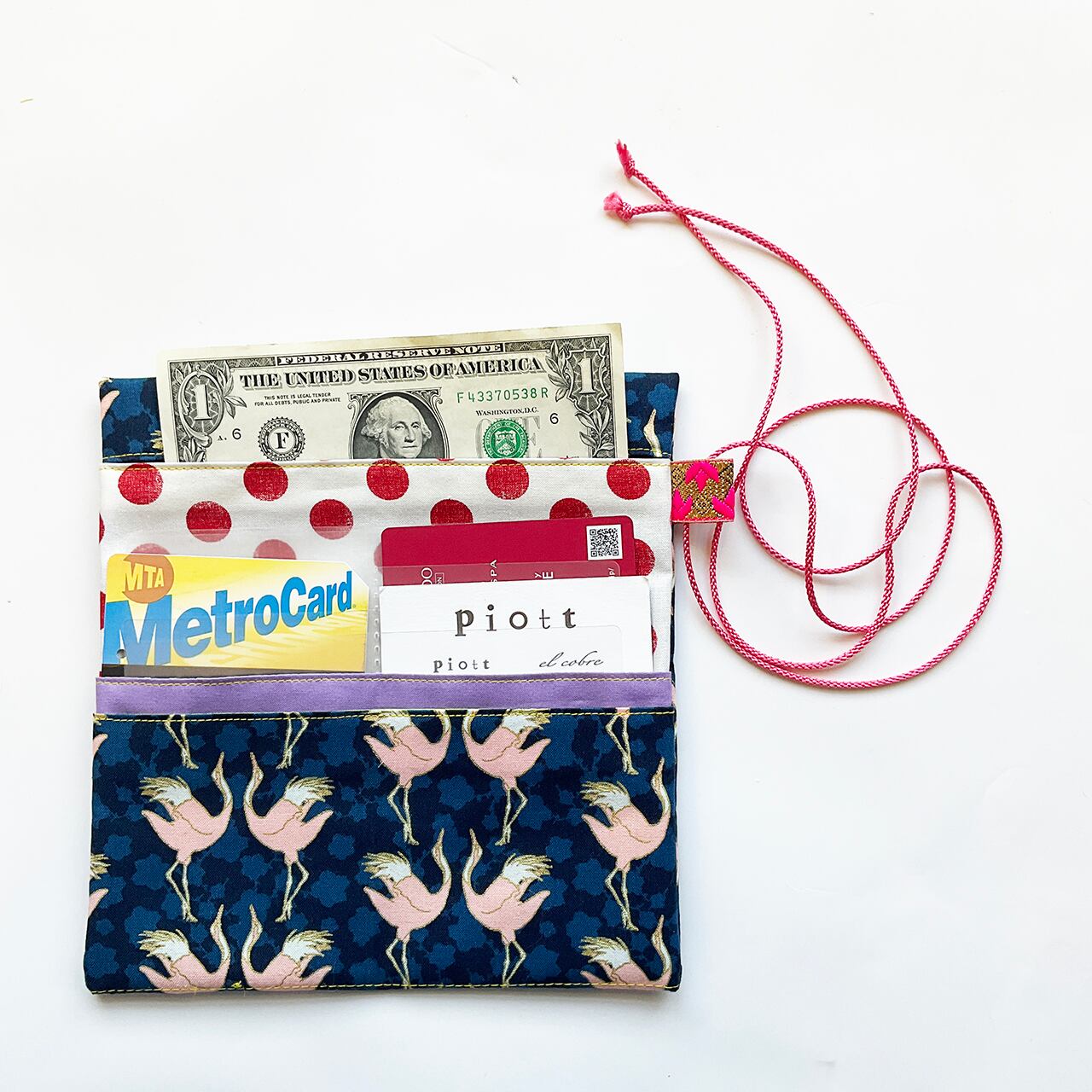 つるフラミンゴ ハンドメイド-ヌノザイフ-0379-98