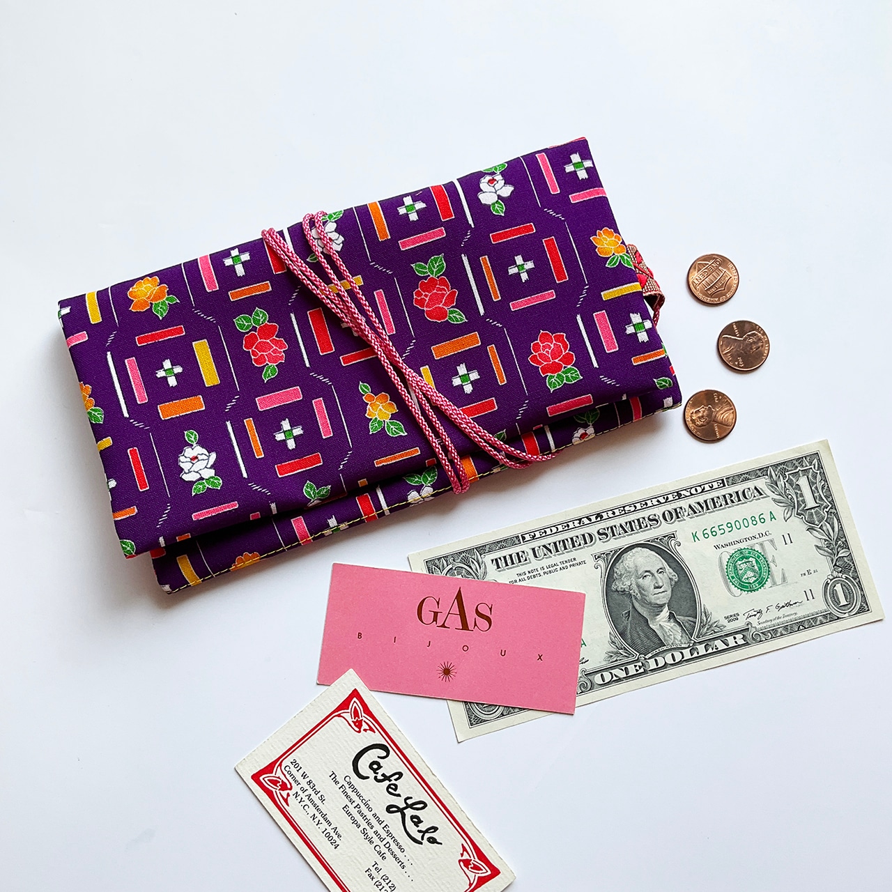 思い立ってデッドストックの布で色とりどりに作って使っていたら、「かわいい!どこで買ったの?私も欲しい!」「こういう軽い財布を探していたよ」とたびたび言われるようになりましたので、sawing club で作ってお裾分けすることにしました。
