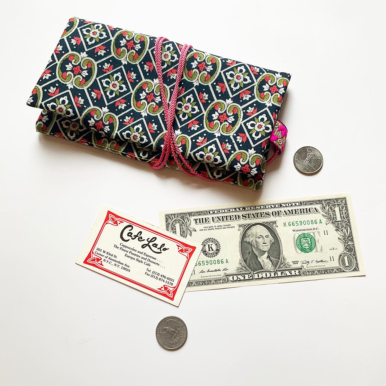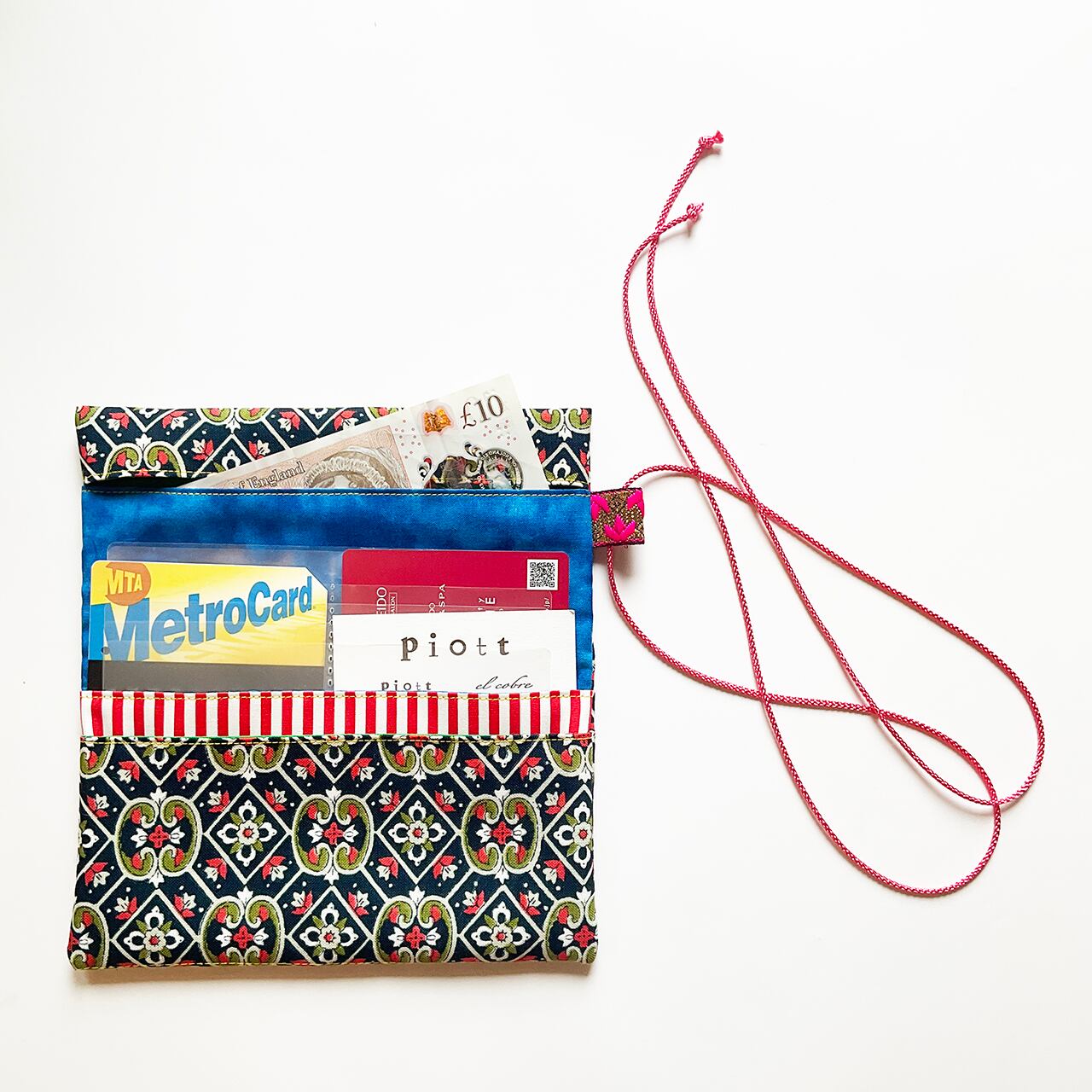 軽くて小粋な、シンプルで使いやすい布の札入れです。お薬手帳、へそくり管理にも。
