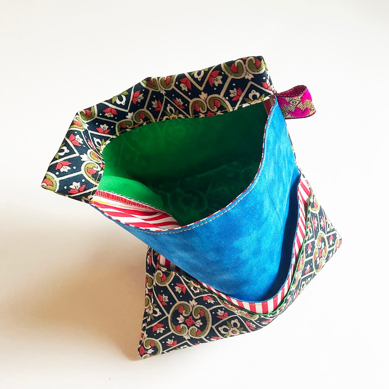 思い立ってデッドストックの布で色とりどりに作って使っていたら、「かわいい!どこで買ったの?私も欲しい!」「こういう軽い財布を探していたよ」とたびたび言われるようになりましたので、sawing club で作ってお裾分けすることにしました。