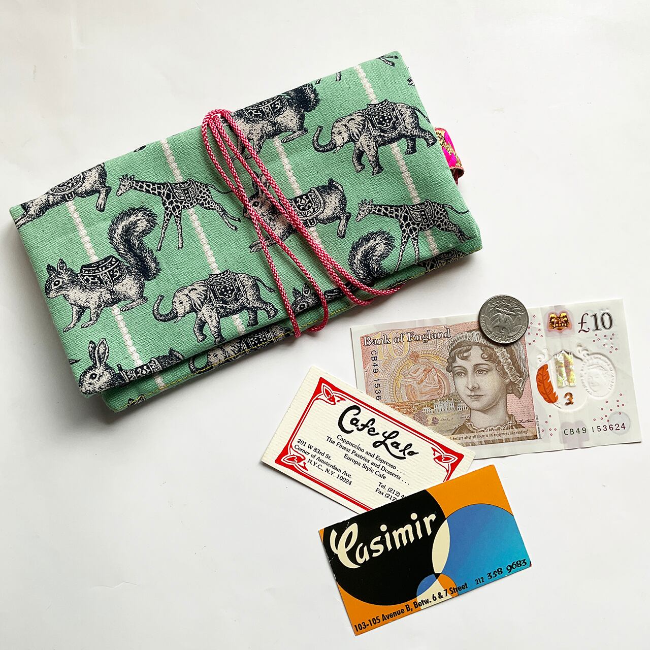 軽くて小粋な、シンプルで使いやすい布の札入れです。お薬手帳、へそくり管理にも。