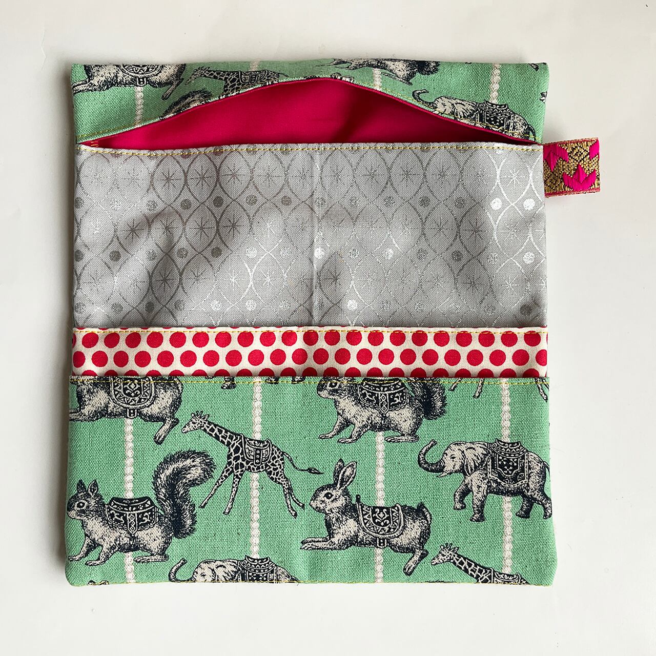 思い立ってデッドストックの布で色とりどりに作って使っていたら、「かわいい!どこで買ったの?私も欲しい!」「こういう軽い財布を探していたよ」とたびたび言われるようになりましたので、sawing club で作ってお裾分けすることにしました。