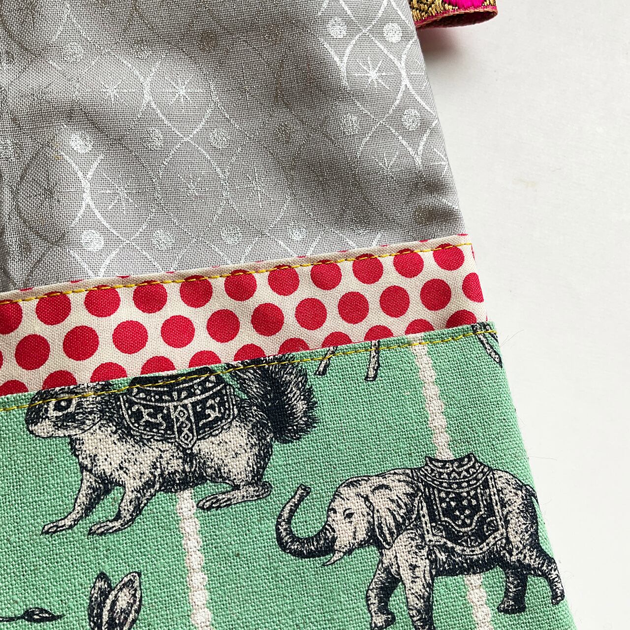 人気の柄です。布合わせで楽しいサーカスの雰囲気を盛り上げてみました。