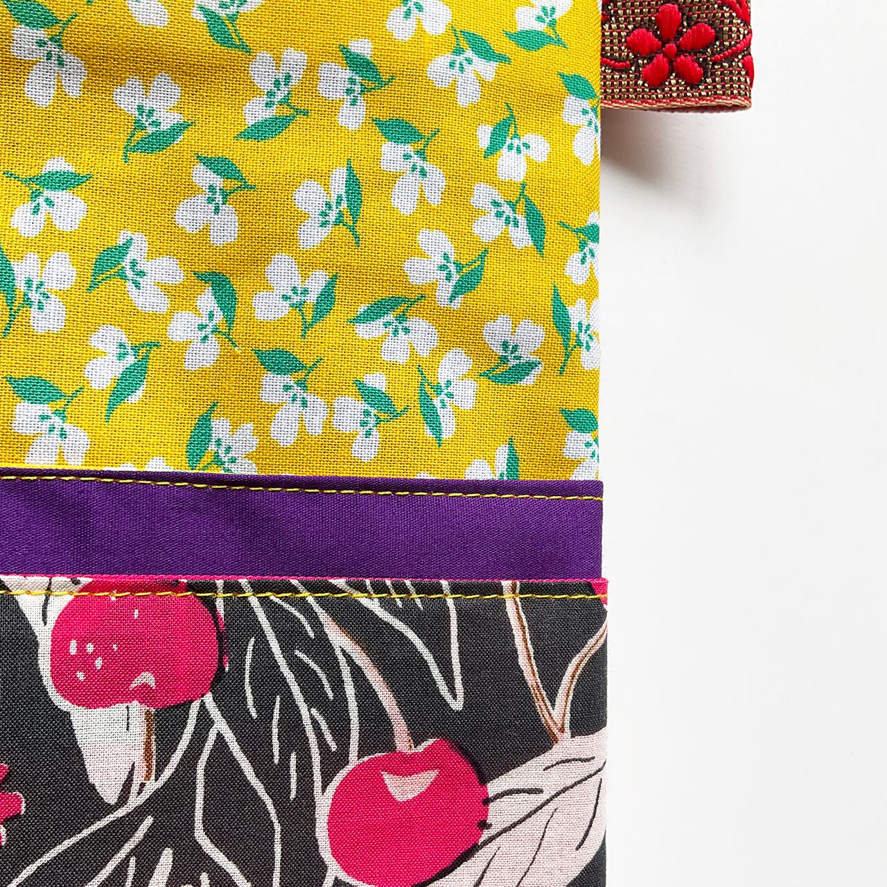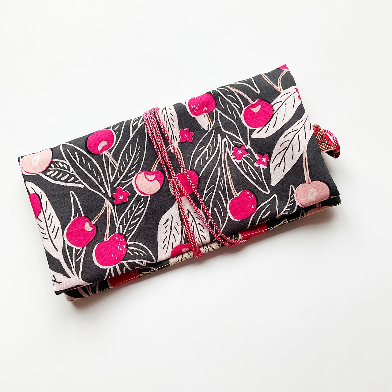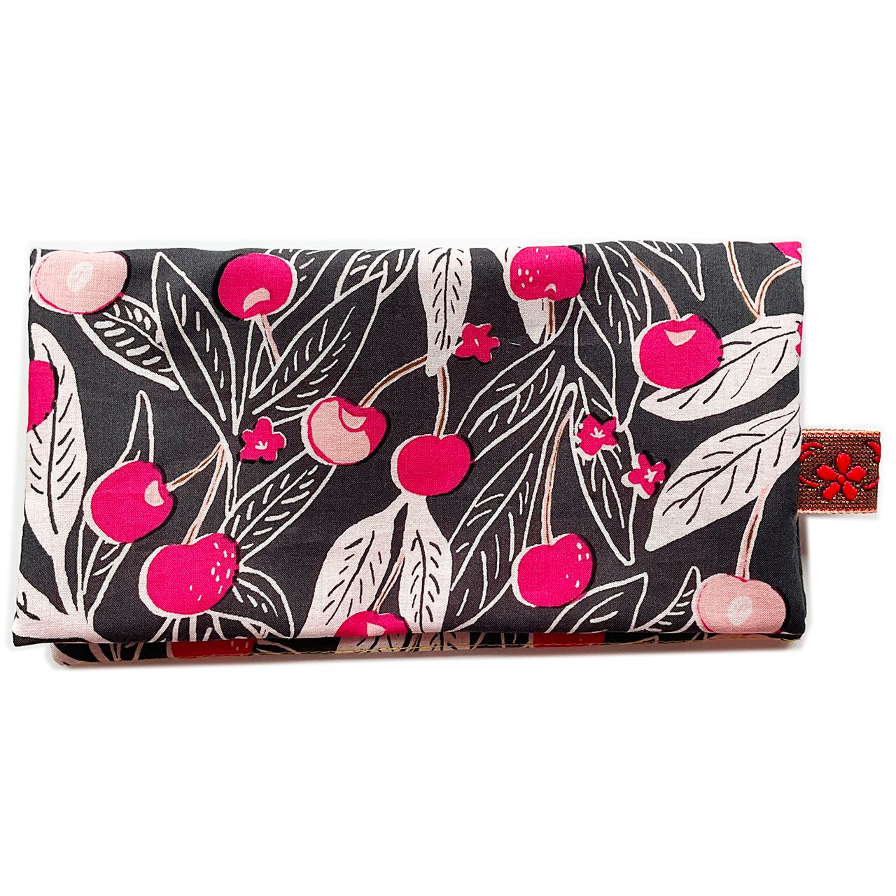 さくらんぼ北欧風 濃墨 ハンドメイド-ヌノザイフ-20310-65