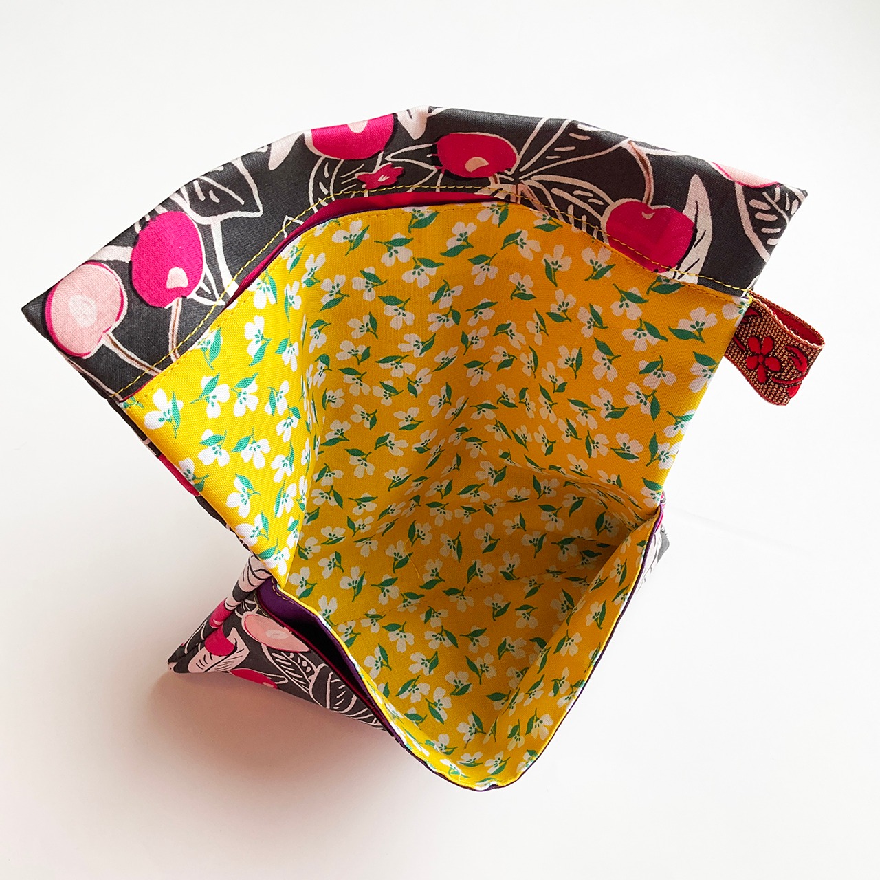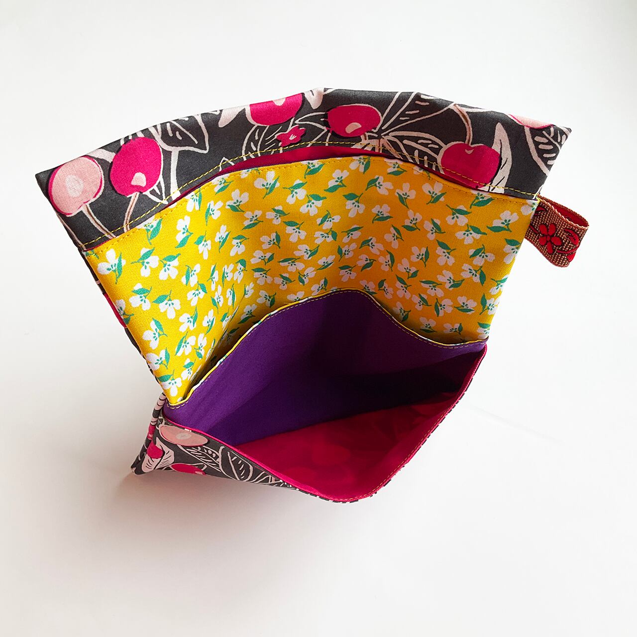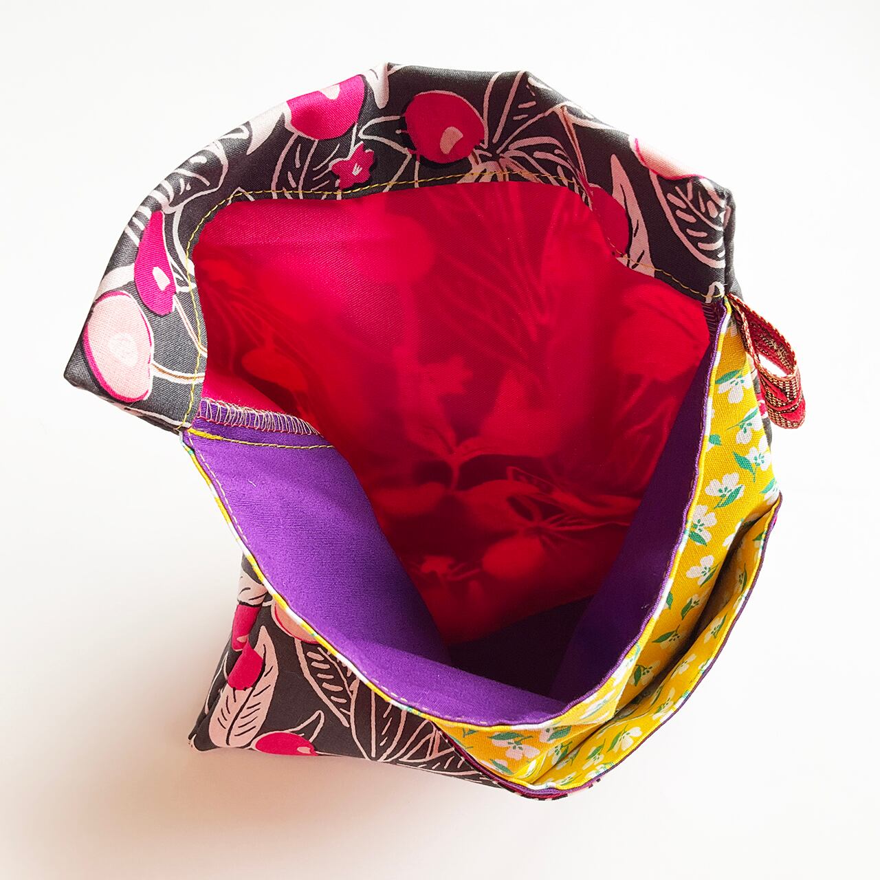 さくらんぼ北欧風 濃墨 ハンドメイド-ヌノザイフ-20310-65
