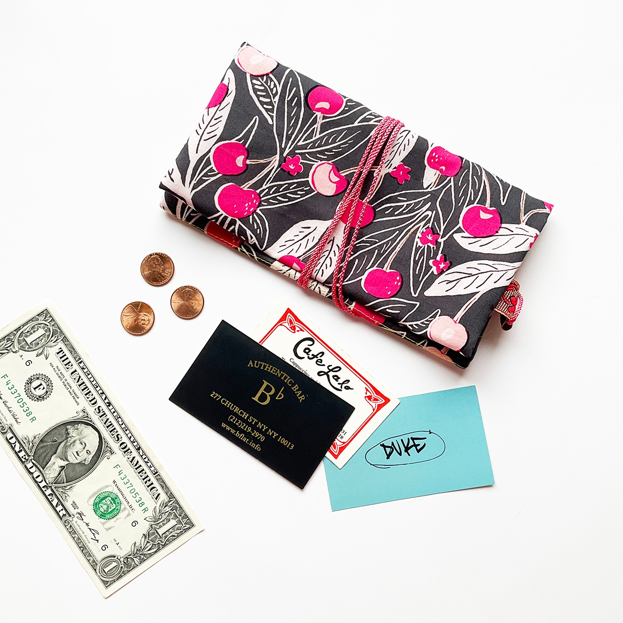 軽くて小粋な、シンプルで使いやすい布の札入れです。