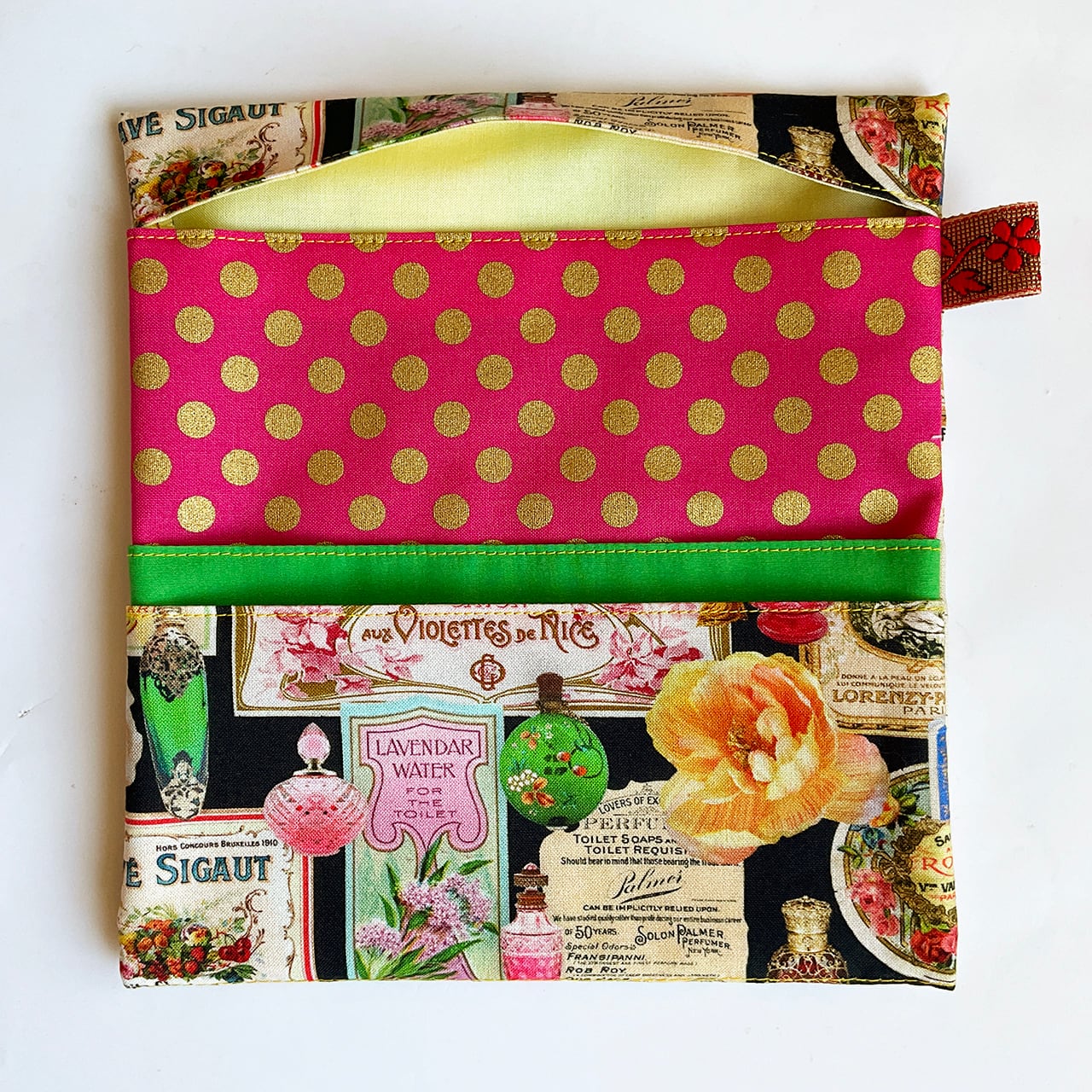 思い立ってデッドストックの布で色とりどりに作って使っていたら、「かわいい!どこで買ったの?私も欲しい!」「こういう軽い財布を探していたよ」とたびたび言われるようになりましたので、sawing club で作ってお裾分けすることにしました。