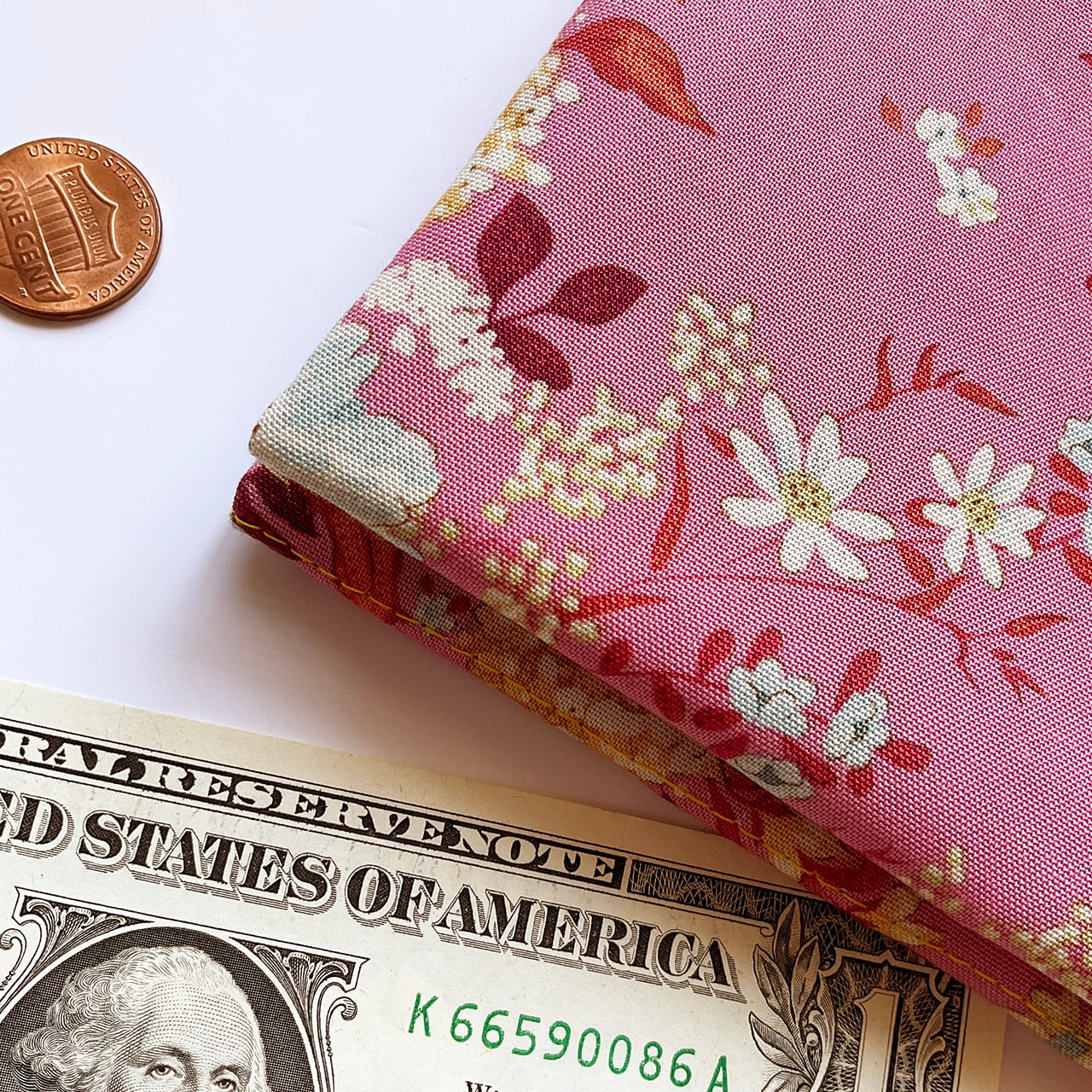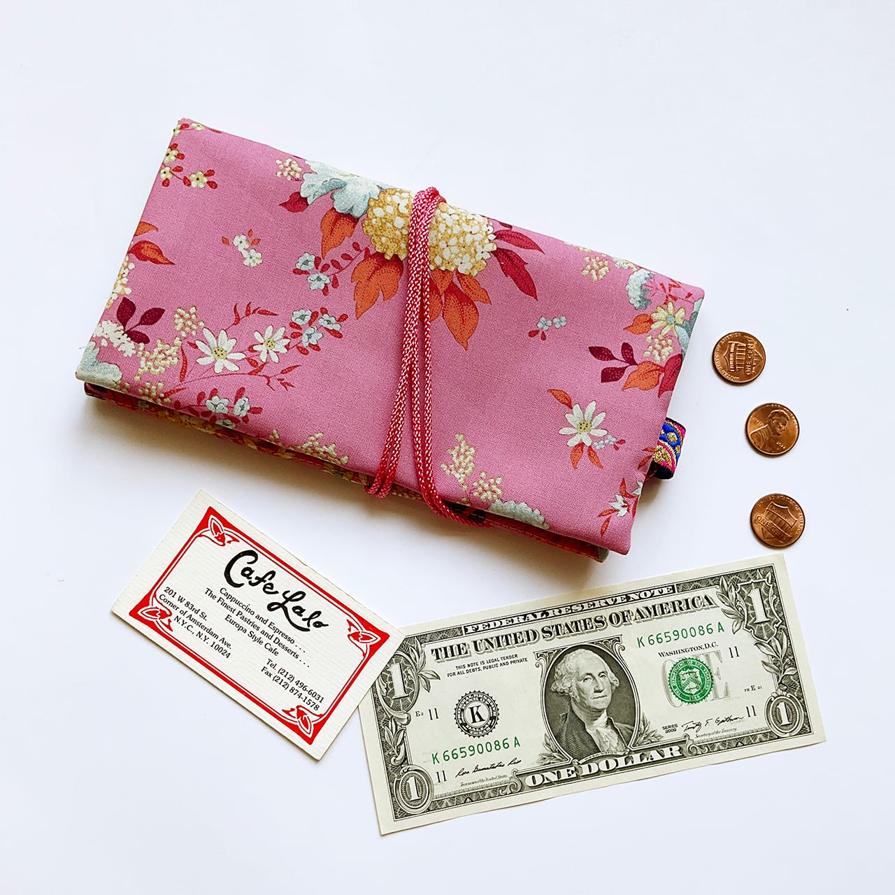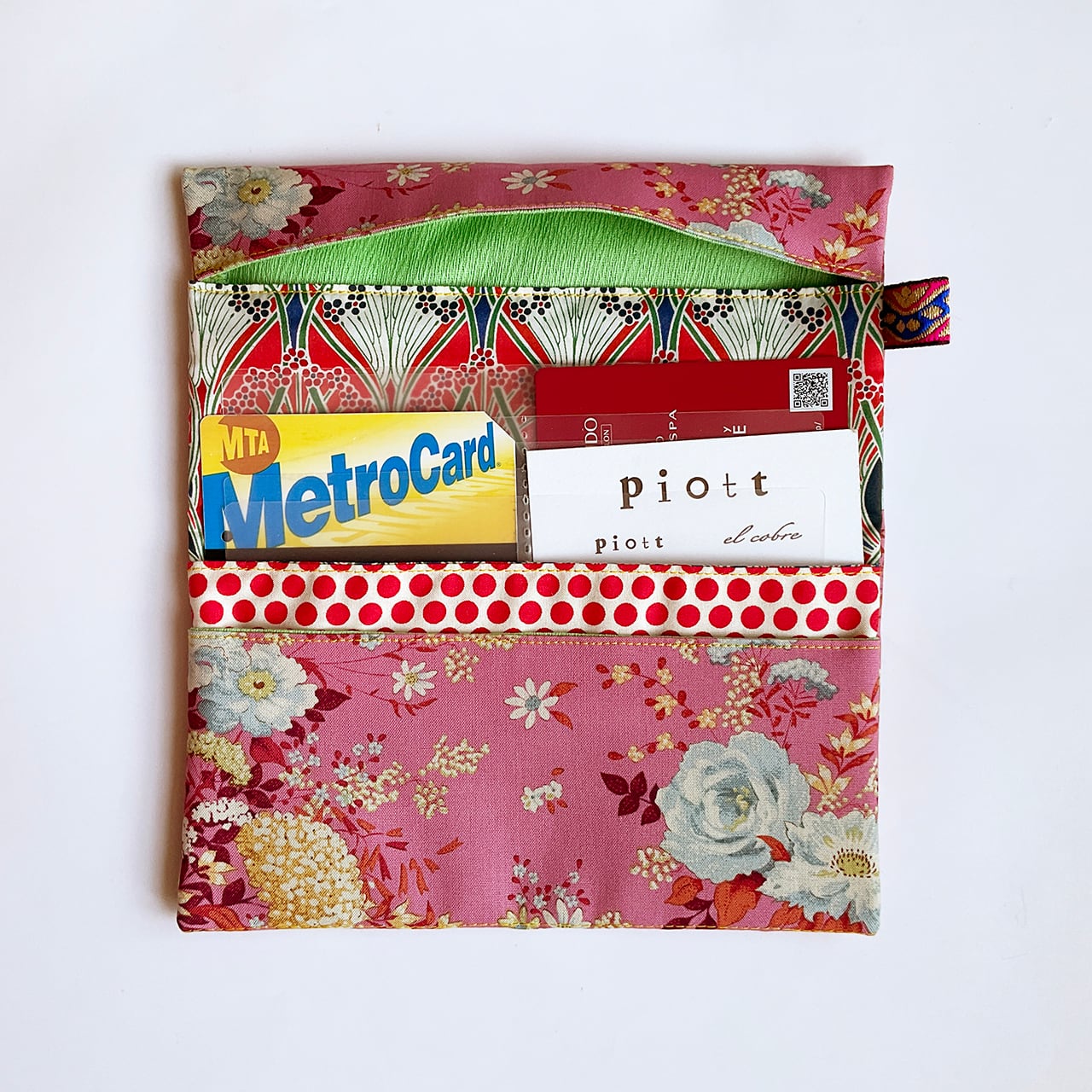 思い立ってデッドストックの布で色とりどりに作って使っていたら、「かわいい!どこで買ったの?私も欲しい!」「こういう軽い財布を探していたよ」とたびたび言われるようになりましたので、sawing club で作ってお裾分けすることにしました。
