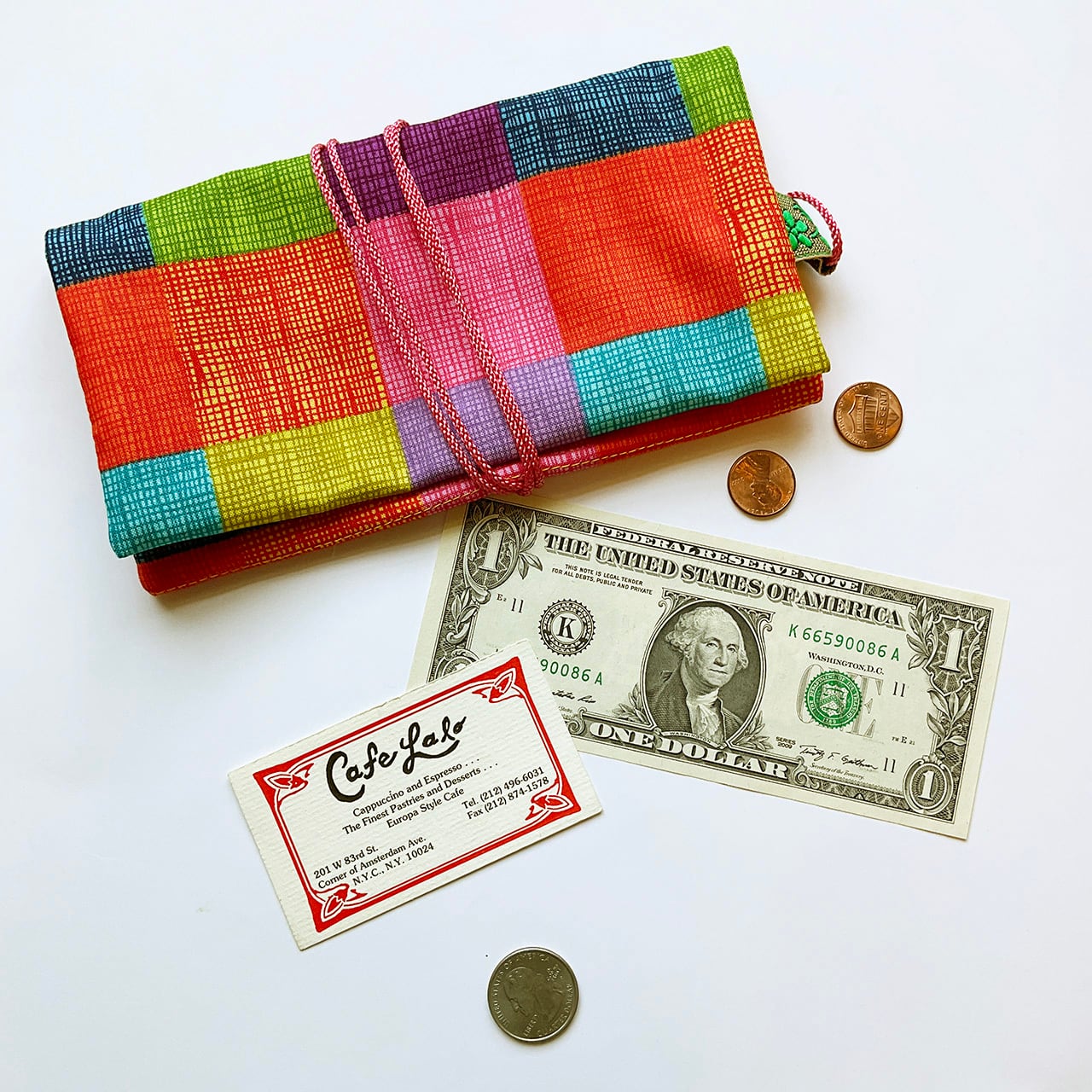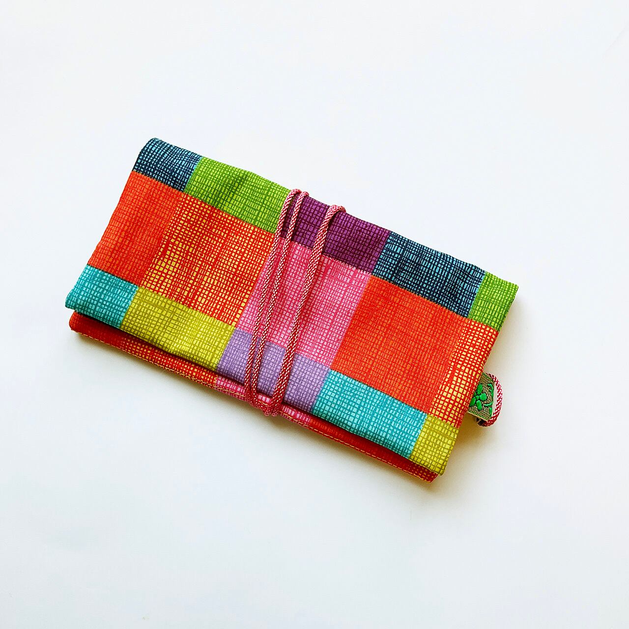 思い立ってデッドストックの布で色とりどりに作って使っていたら、「かわいい!どこで買ったの?私も欲しい!」「こういう軽い財布を探していたよ」とたびたび言われるようになりましたので、sawing club で作ってお裾分けすることにしました。