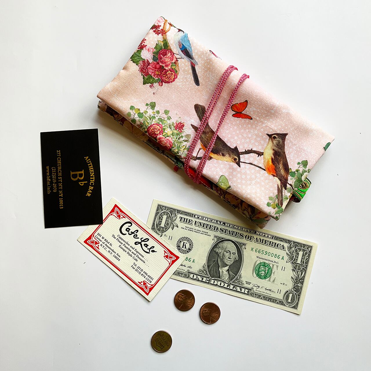 軽くて小粋な、シンプルで使いやすい布の札入れです。お薬手帳、へそくり管理にも。