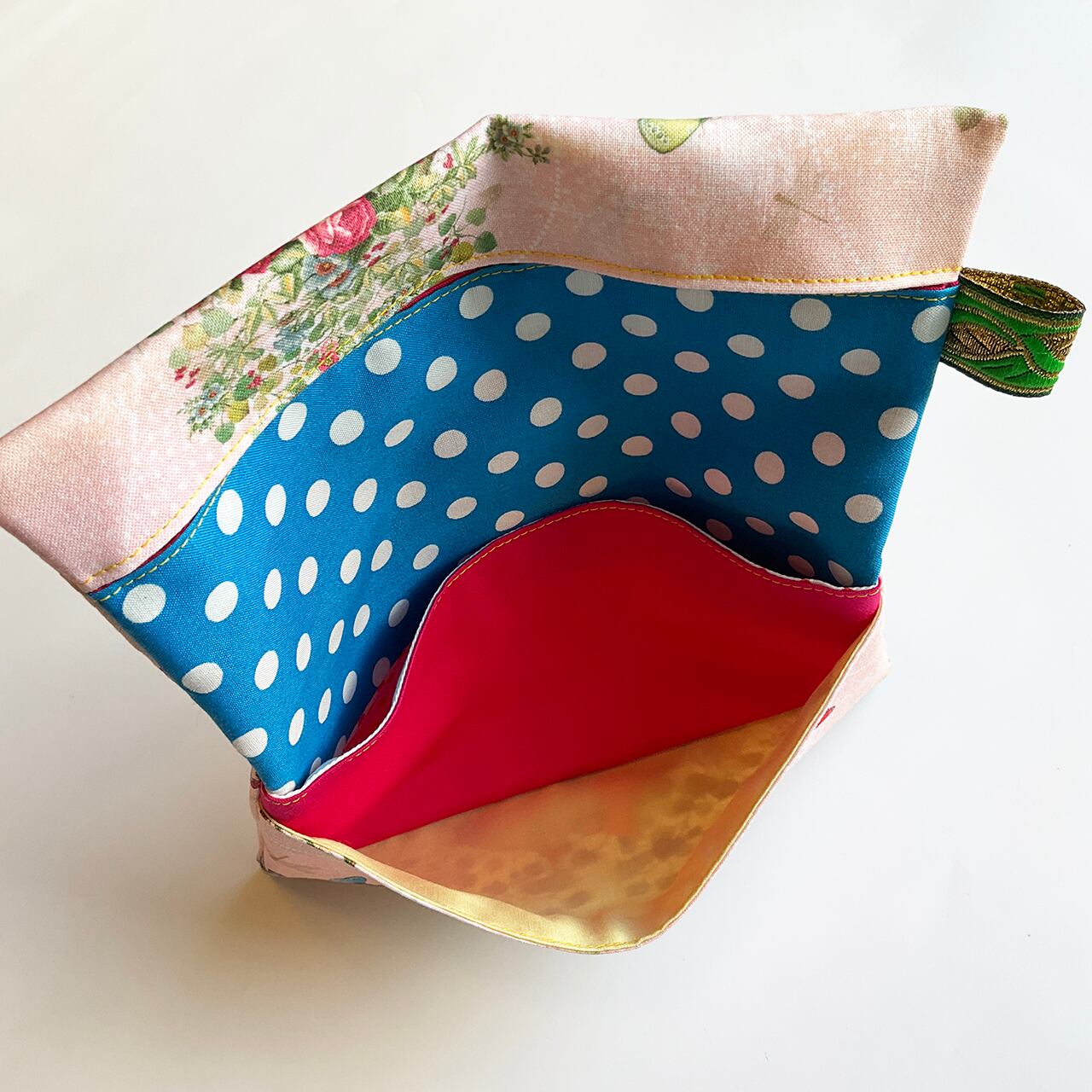 思い立ってデッドストックの布で色とりどりに作って使っていたら、「かわいい!どこで買ったの?私も欲しい!」「こういう軽い財布を探していたよ」とたびたび言われるようになりましたので、sawing club で作ってお裾分けすることにしました。