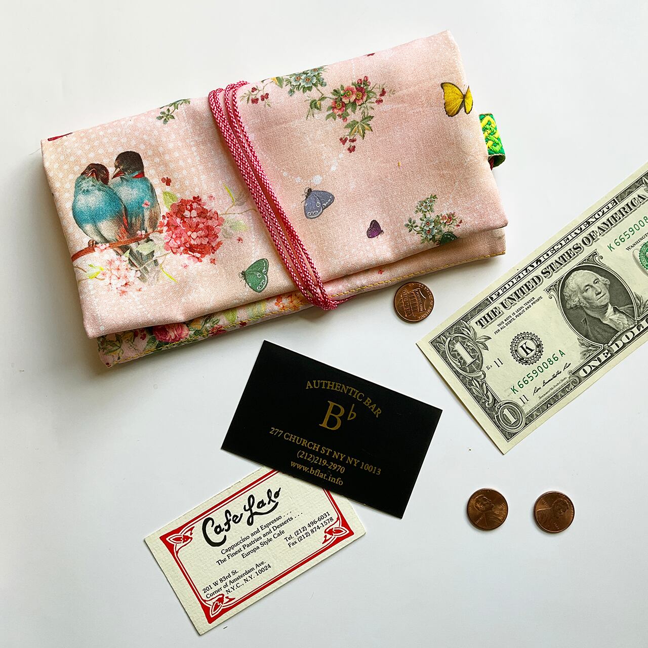 軽くて小粋な、シンプルで使いやすい布の札入れです。お薬手帳、へそくり管理にも。