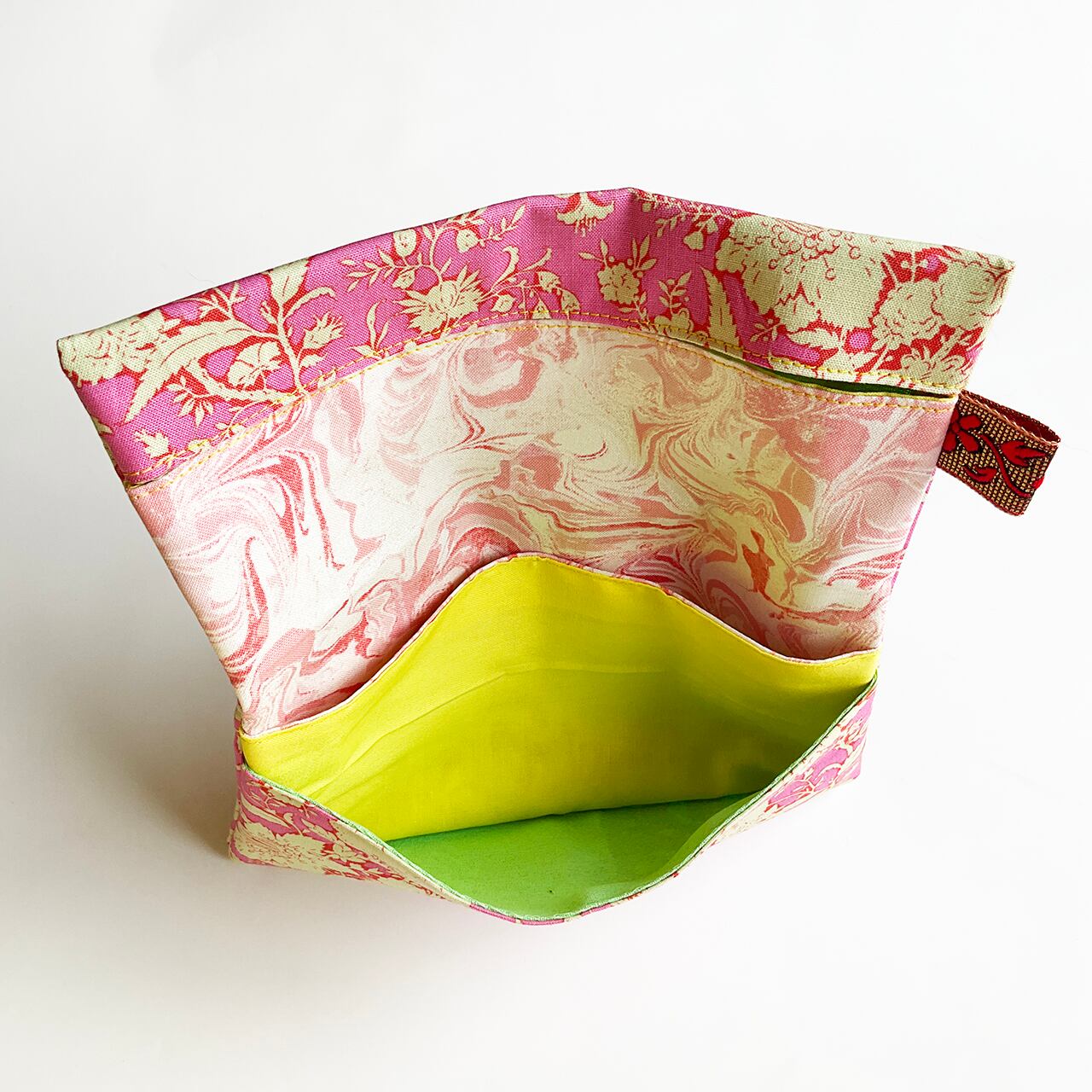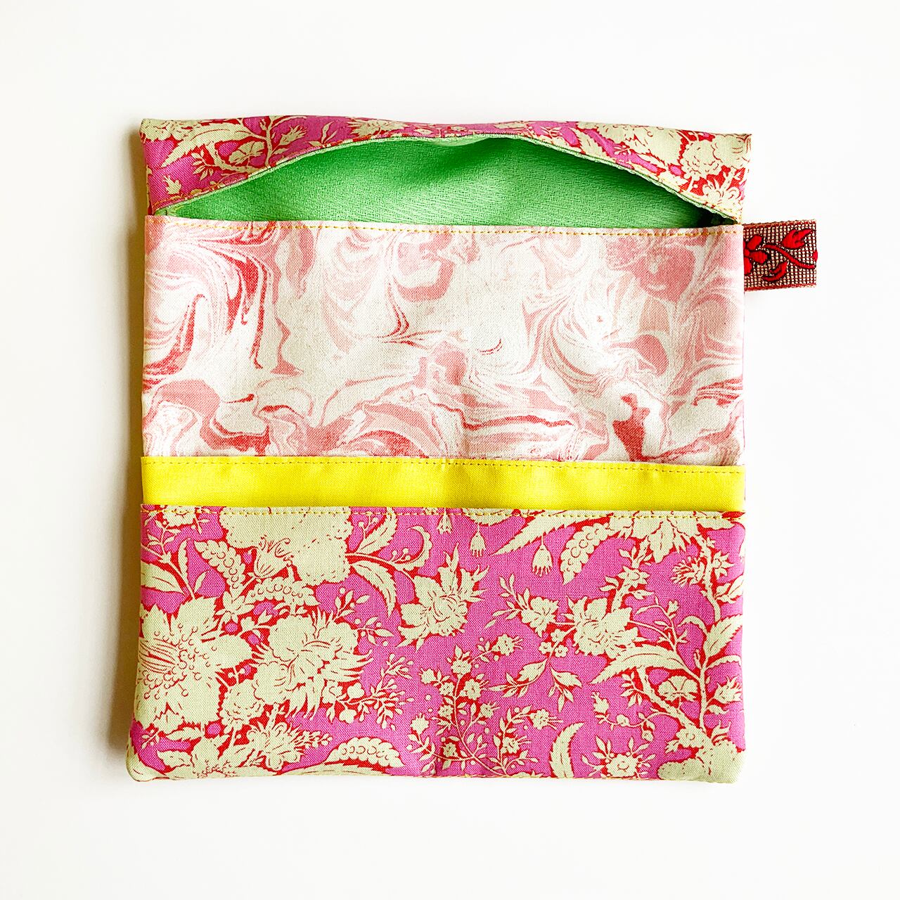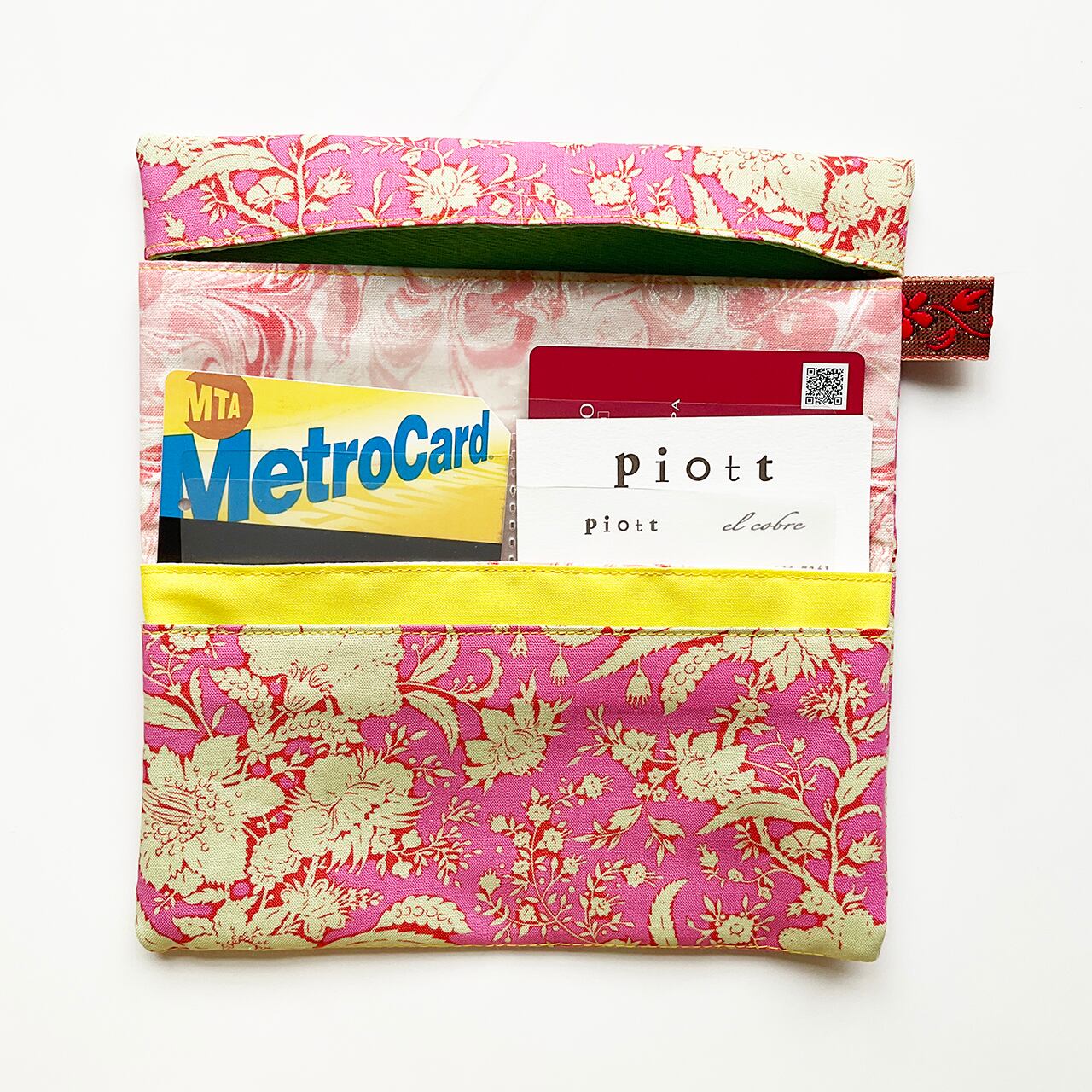 思い立ってデッドストックの布で色とりどりに作って使っていたら、「かわいい!どこで買ったの?私も欲しい!」「こういう軽い財布を探していたよ」とたびたび言われるようになりましたので、sawing club で作ってお裾分けすることにしました。