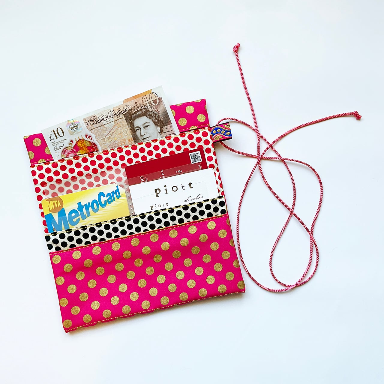 軽くて小粋な、シンプルで使いやすい布の札入れです。お薬手帳、へそくり管理にも。