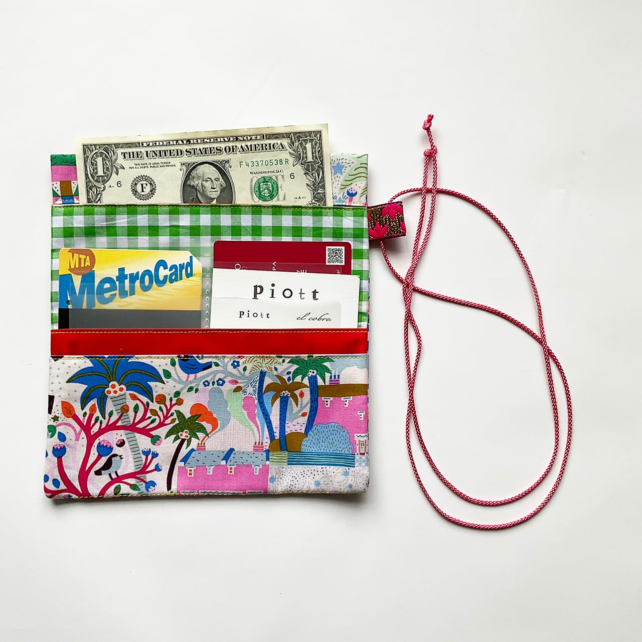 思い立ってデッドストックの布で色とりどりに作って使っていたら、「かわいい!どこで買ったの?私も欲しい!」「こういう軽い財布を探していたよ」とたびたび言われるようになりましたので、sawing club で作ってお裾分けすることにしました。
