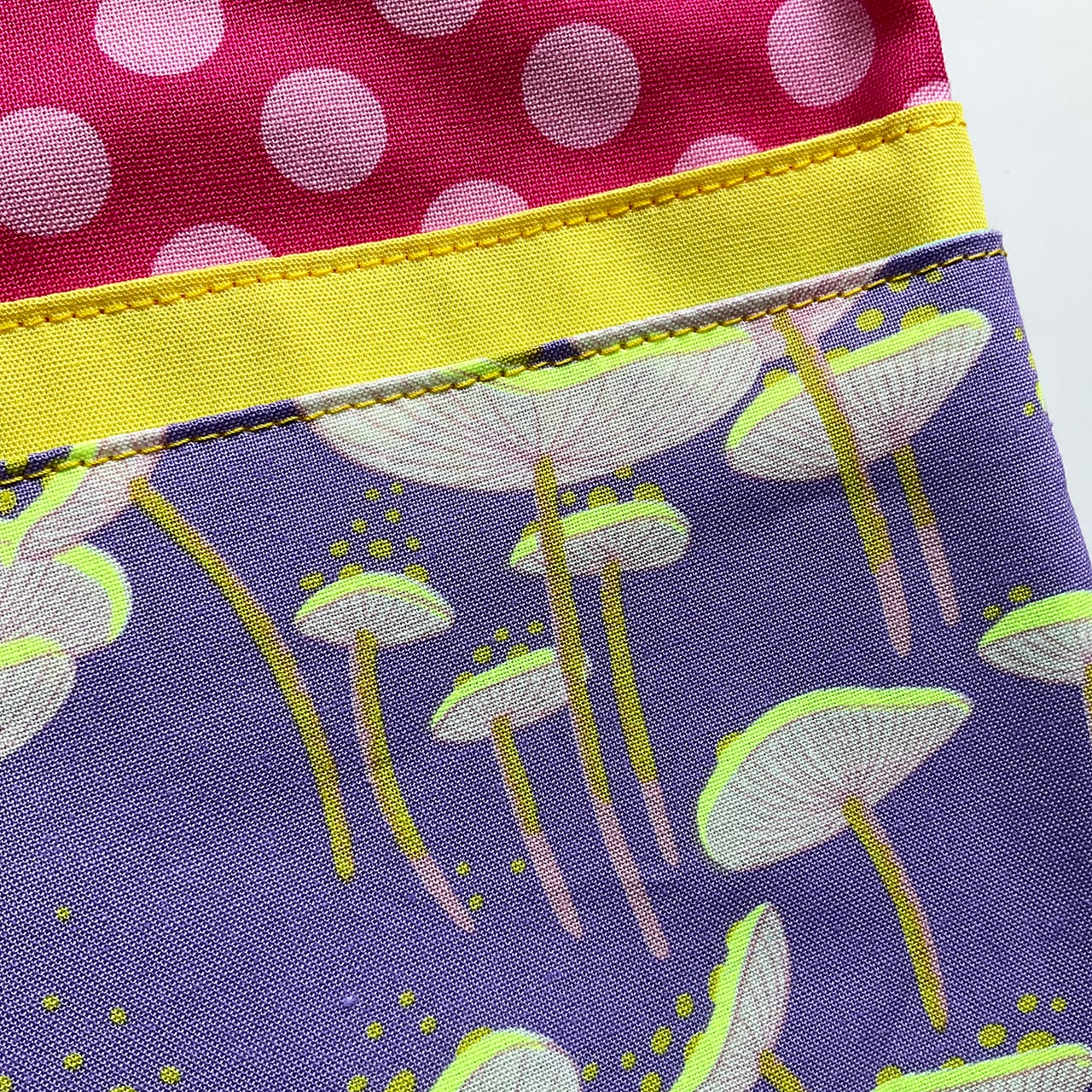 蛍光黄色に負けないように、兎にも角にもポップにKAWAIく布合わせ。