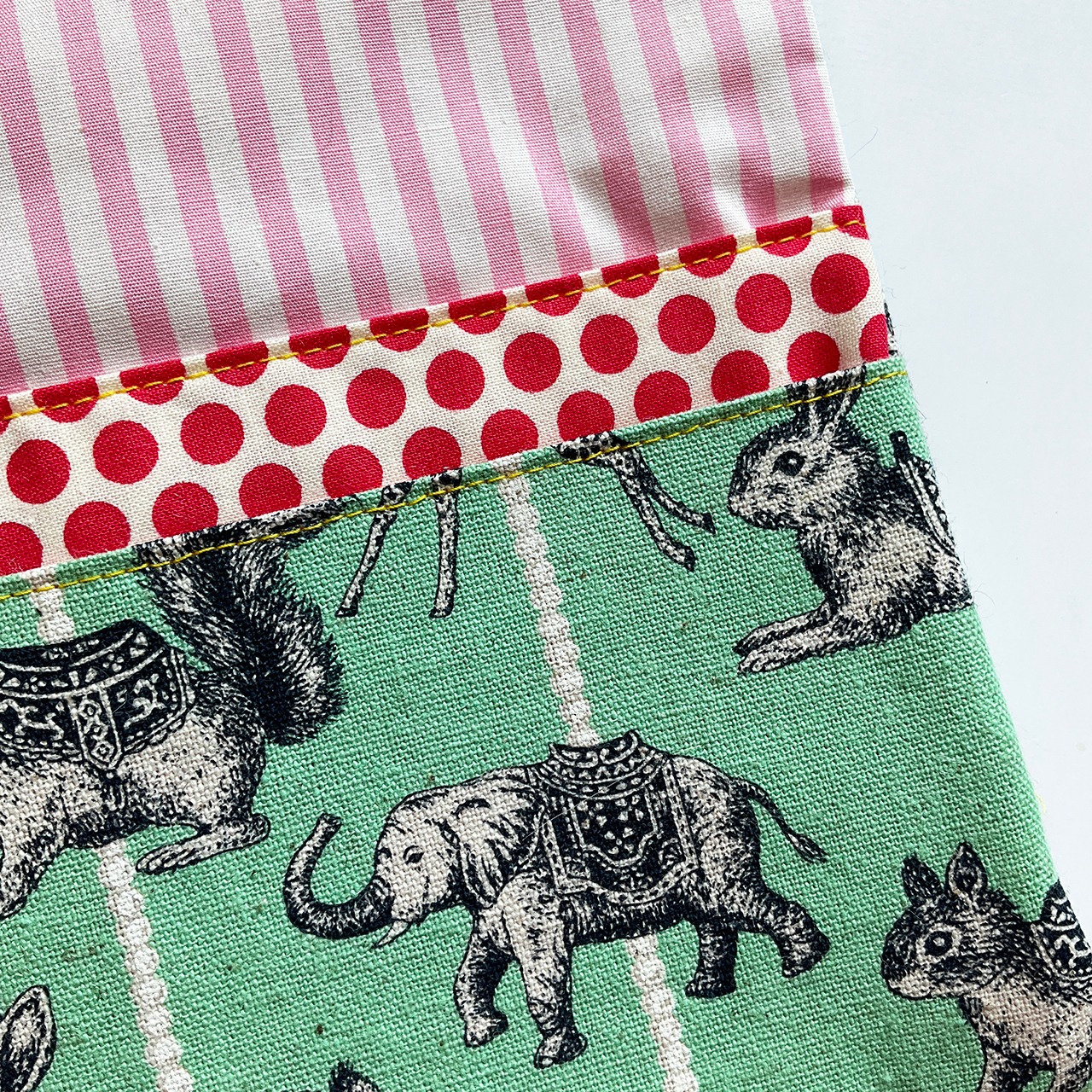 人気の柄です。布合わせで楽しいサーカスの雰囲気を盛り上げてみました。