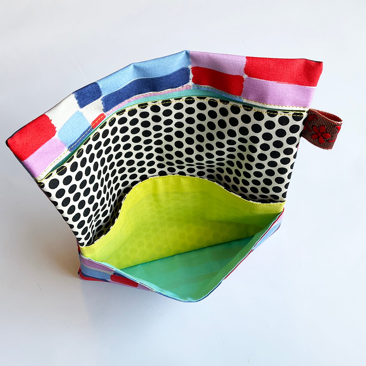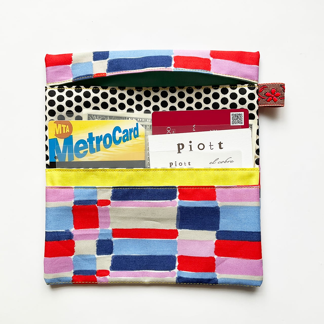 思い立ってデッドストックの布で色とりどりに作って使っていたら、「かわいい!どこで買ったの?私も欲しい!」「こういう軽い財布を探していたよ」とたびたび言われるようになりましたので、sawing club で作ってお裾分けすることにしました。