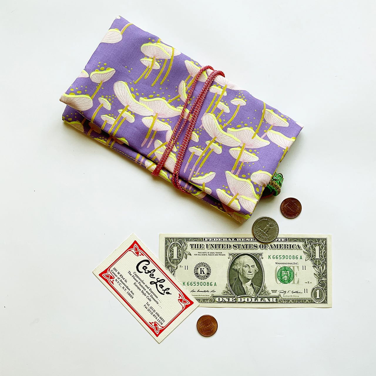 思い立ってデッドストックの布で色とりどりに作って使っていたら、「かわいい!どこで買ったの?私も欲しい!」「こういう軽い財布を探していたよ」とたびたび言われるようになりましたので、sawing club で作ってお裾分けすることにしました。