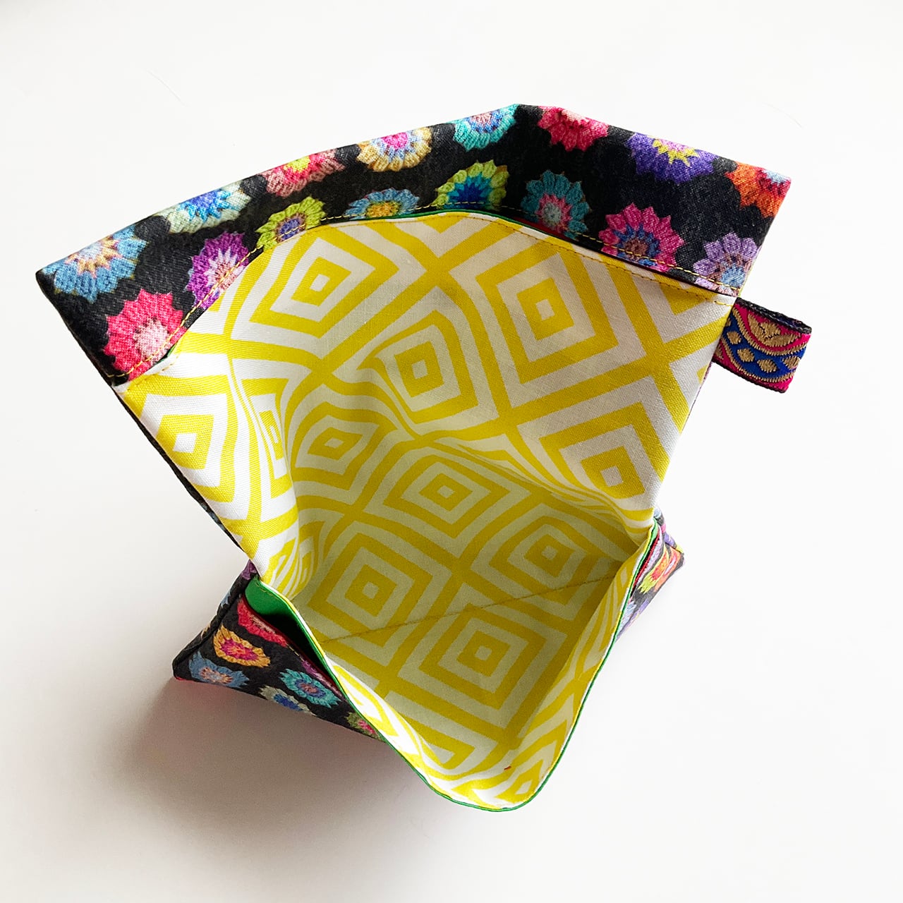 ・中布 黄色の幾何学模様/チラ見えライン 芝生緑/インナー 紅赤