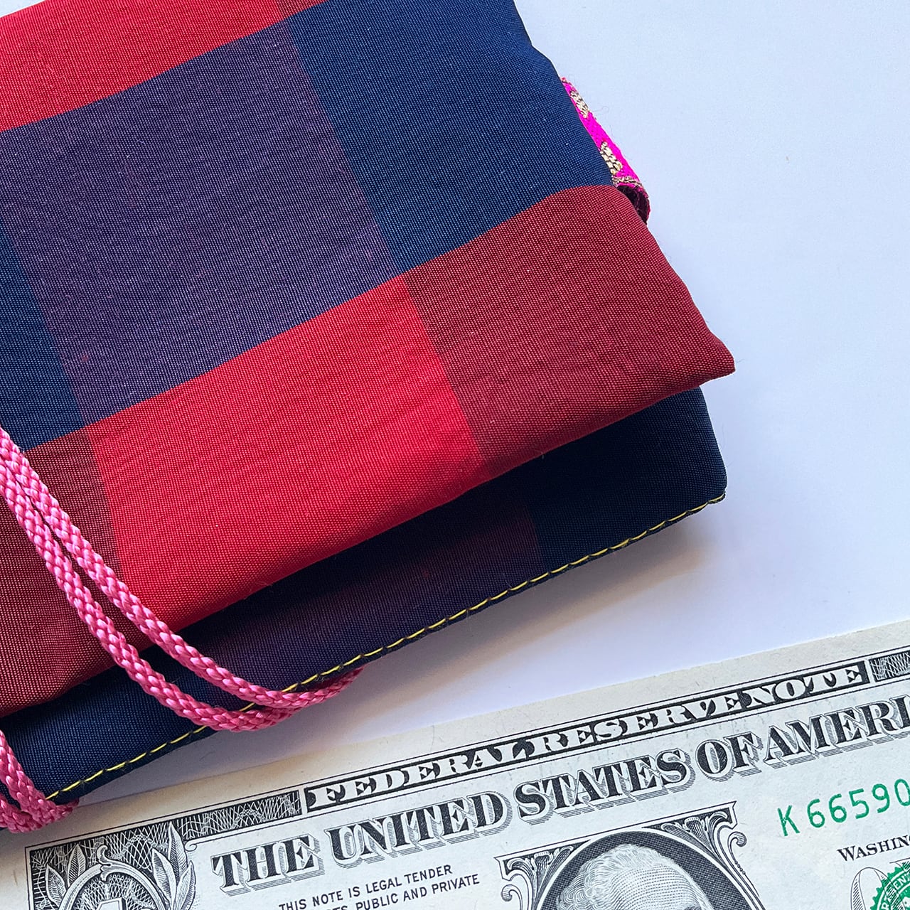 赤青格子 ハンドメイド-ヌノザイフ-23312-40