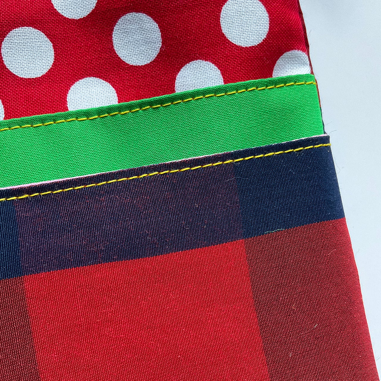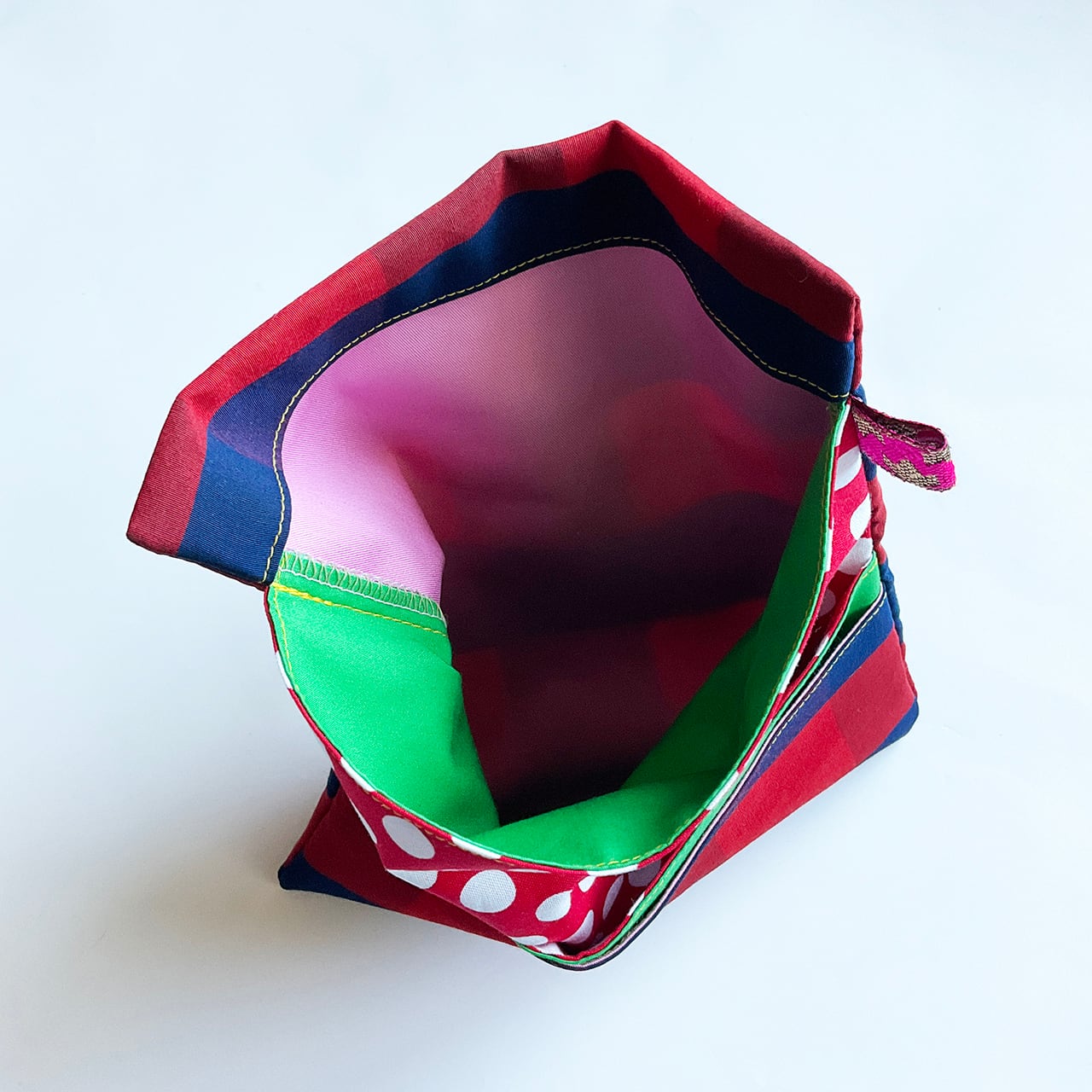 ポップに、心踊るように、布合わせ。しっかりした生地なので高級感が出ます。