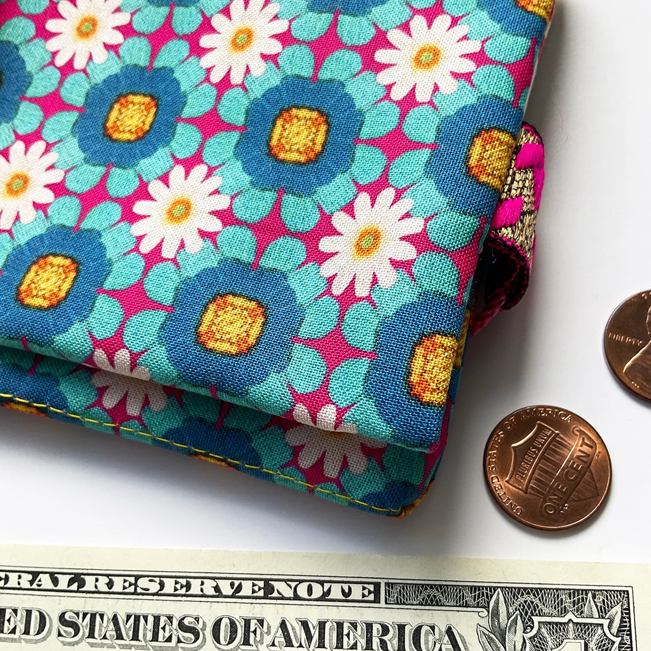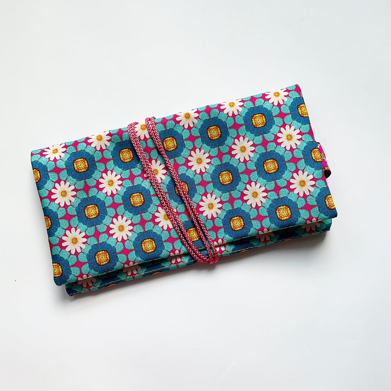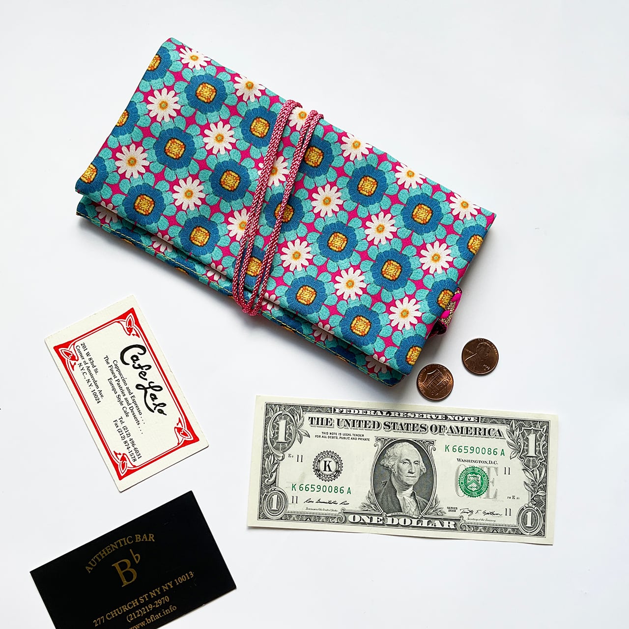 思い立ってデッドストックの布で色とりどりに作って使っていたら、「かわいい!どこで買ったの?私も欲しい!」「こういう軽い財布を探していたよ」とたびたび言われるようになりましたので、sawing club で作ってお裾分けすることにしました。