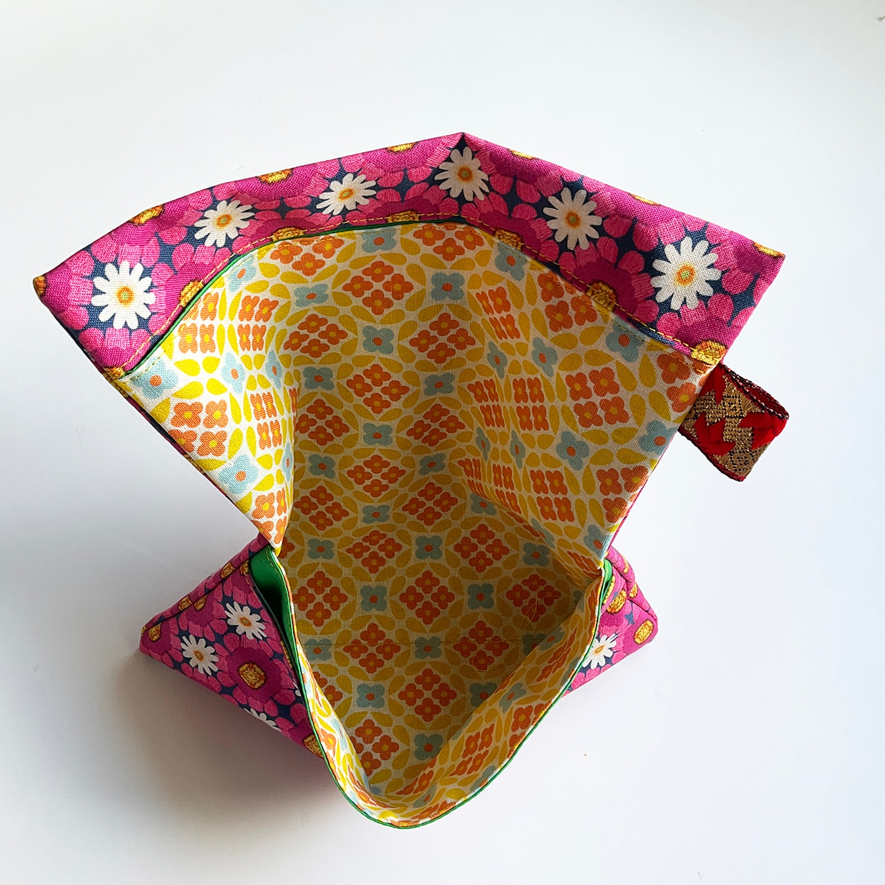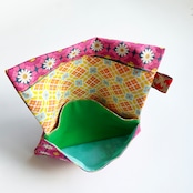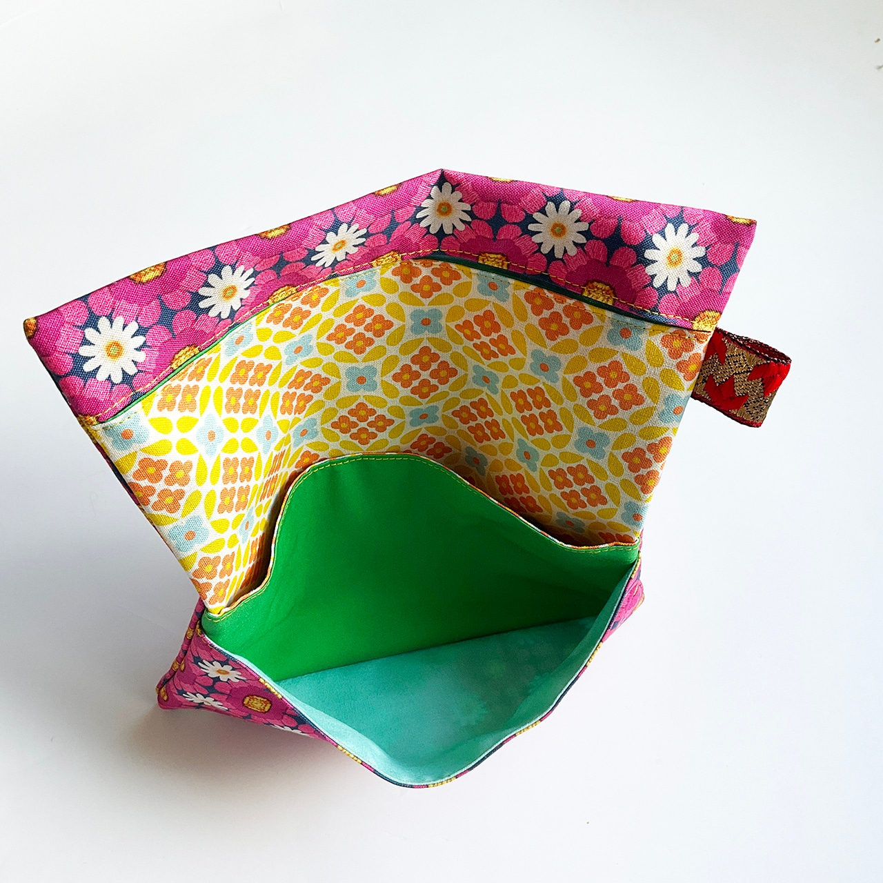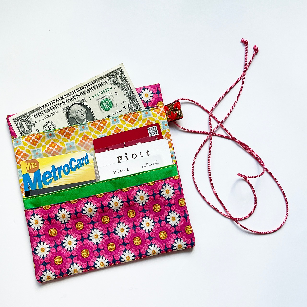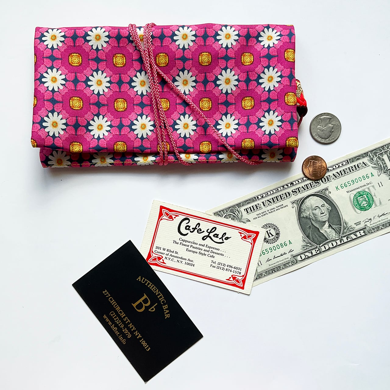 思い立ってデッドストックの布で色とりどりに作って使っていたら、「かわいい!どこで買ったの?私も欲しい!」「こういう軽い財布を探していたよ」とたびたび言われるようになりましたので、sawing club で作ってお裾分けすることにしました。