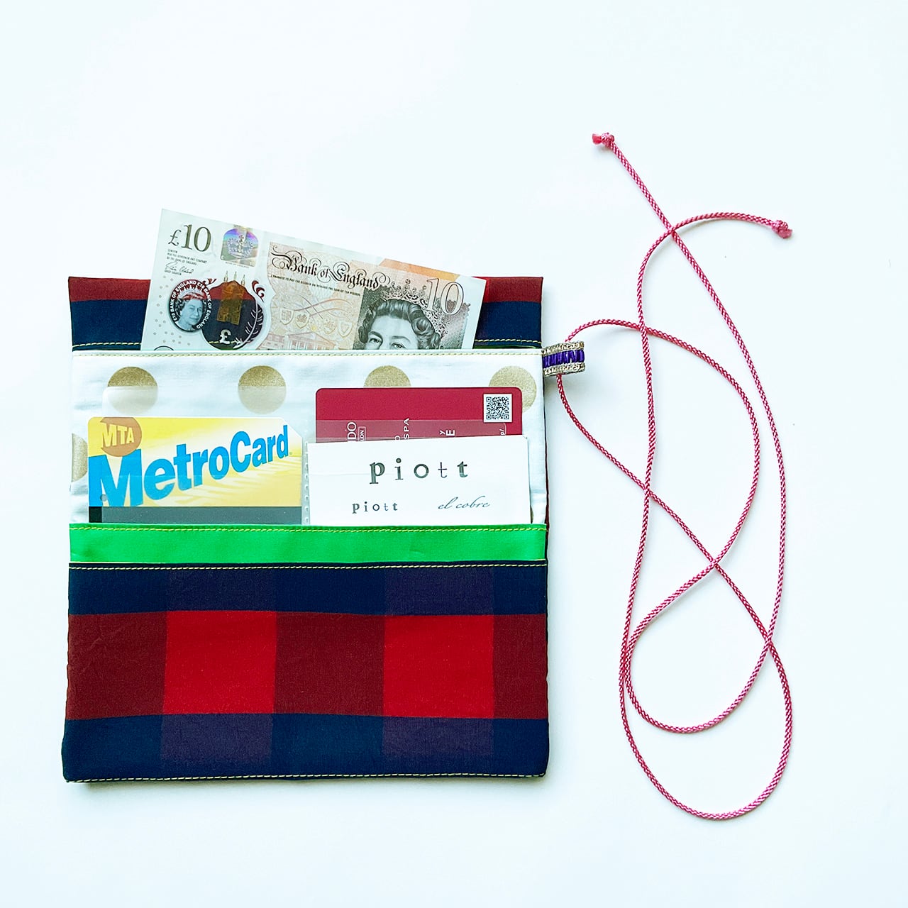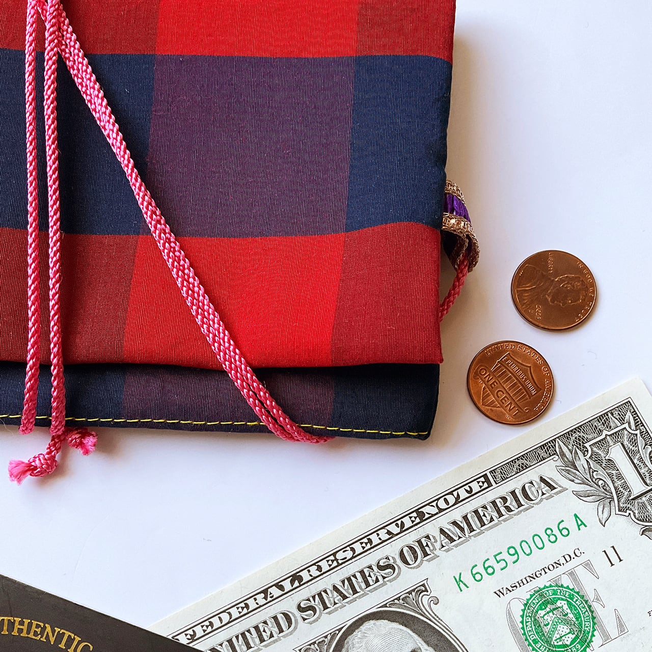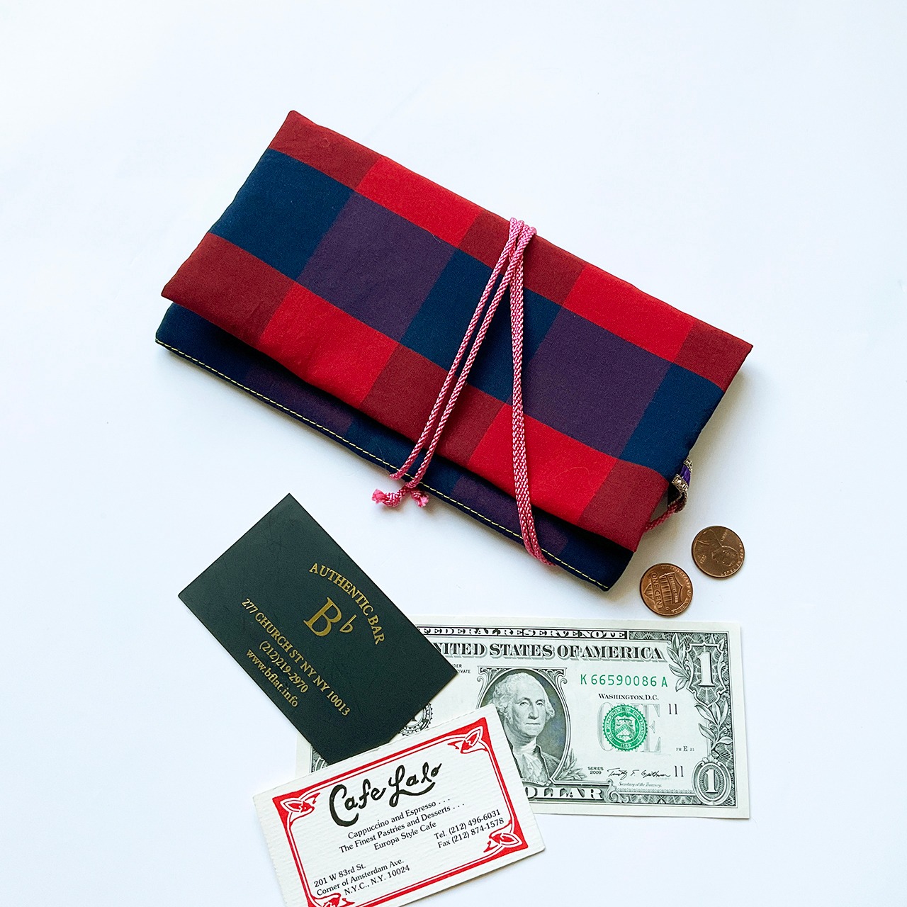 赤青格子 ハンドメイド-ヌノザイフ-23312-55