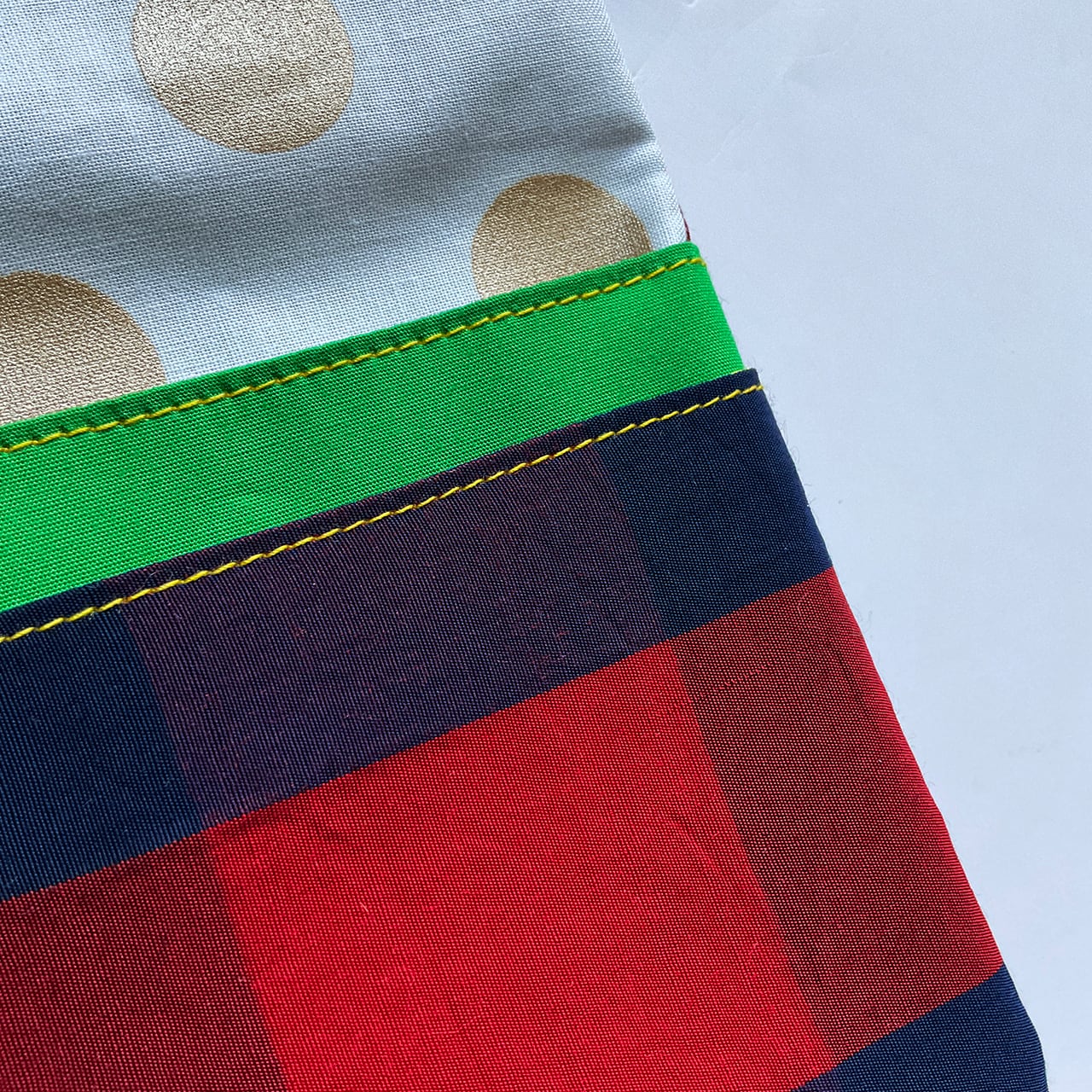 ポップに、心踊るように、布合わせ。しっかりした生地なので高級感が出ます。