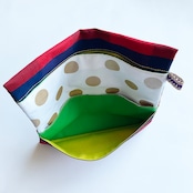 形は江戸の道中財布。欧米のデザインファブリックでポップに明るく作っています。