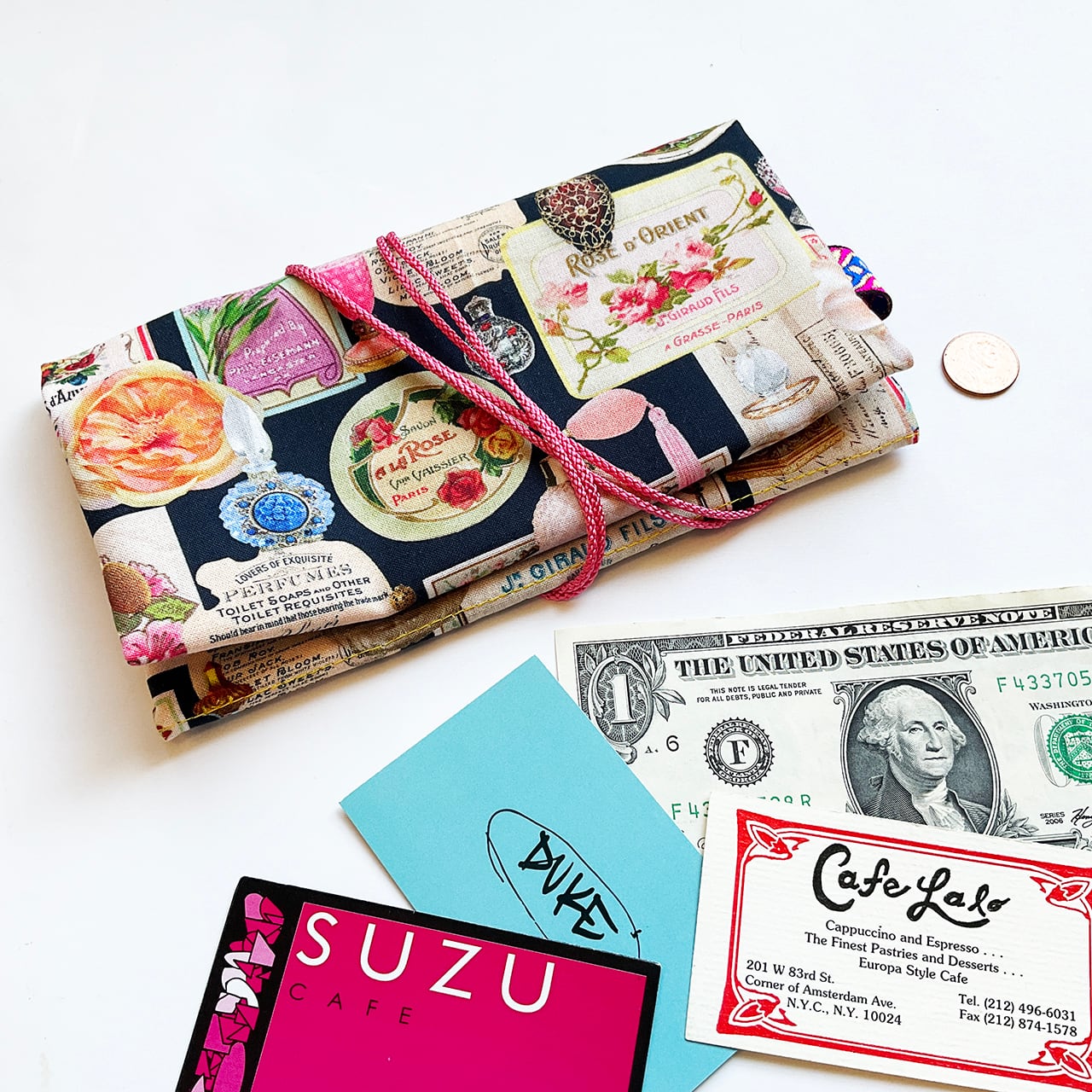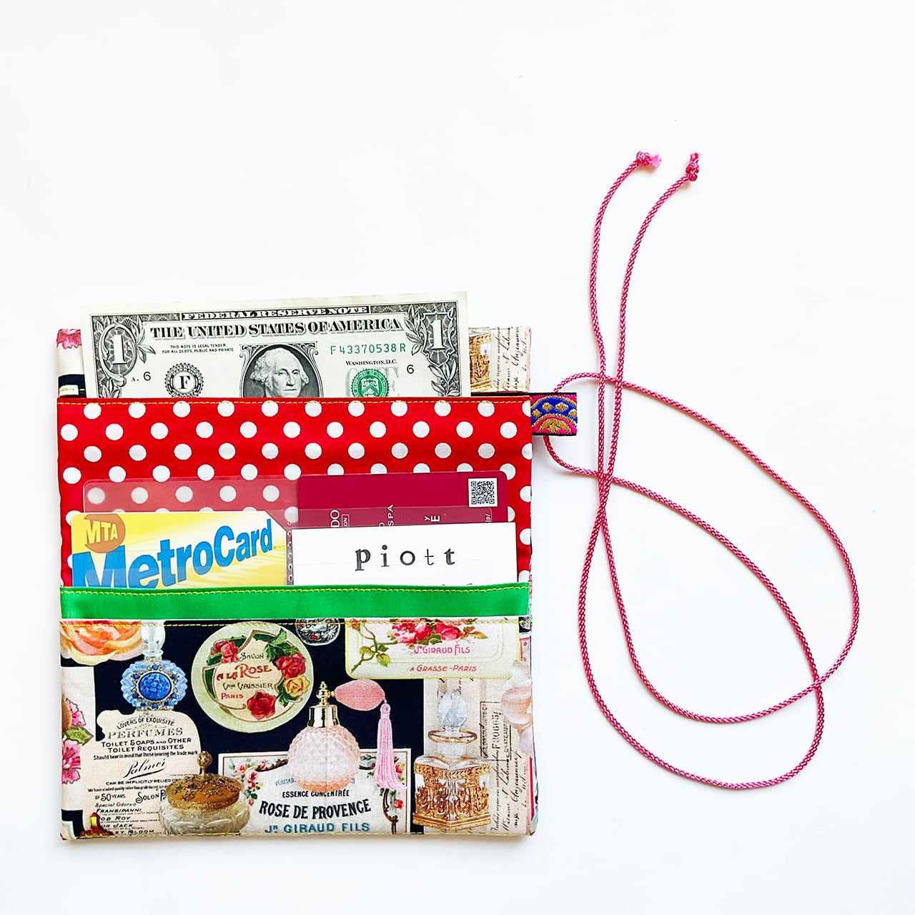 軽くて小粋な、シンプルで使いやすい布の札入れです。お薬手帳、へそくり管理にも。