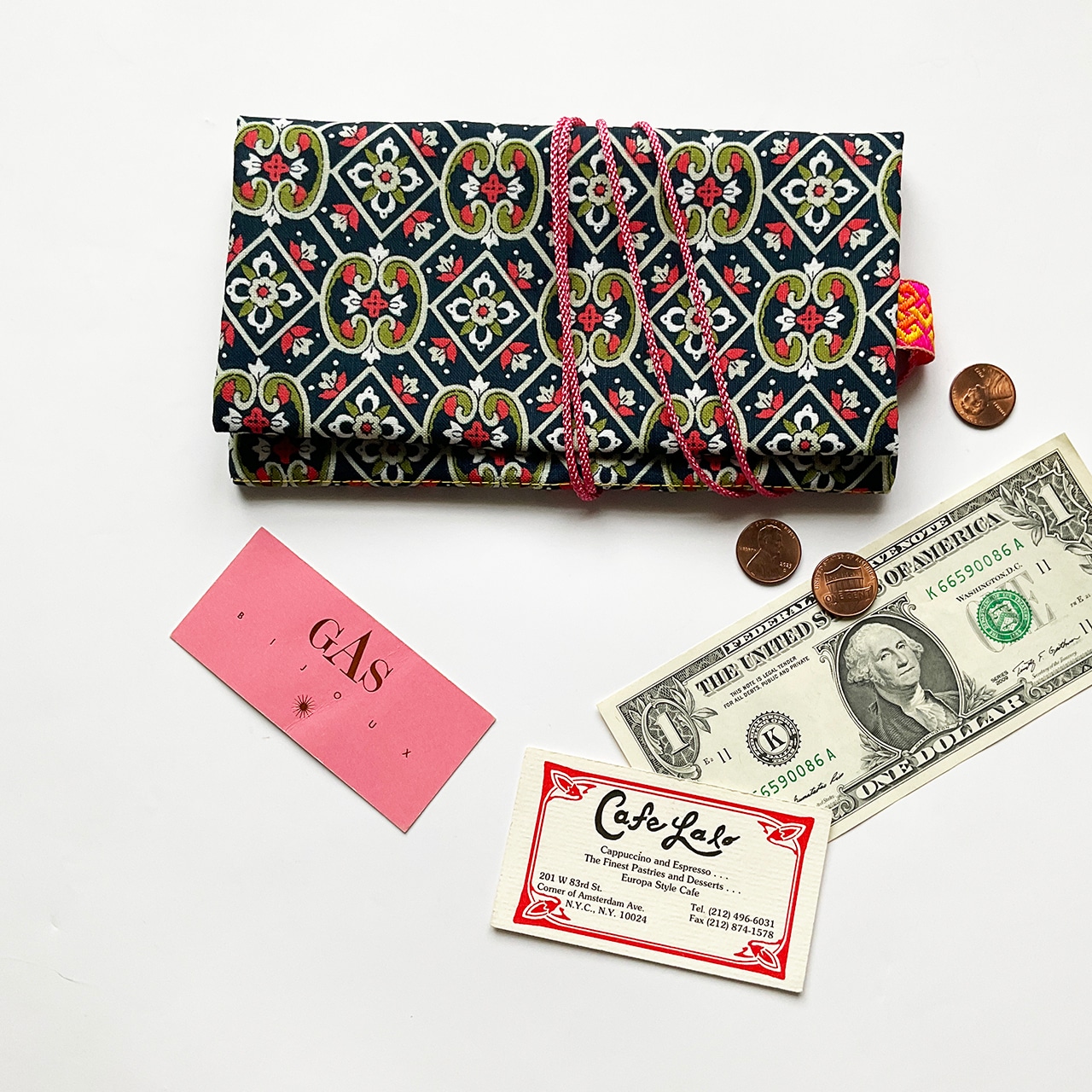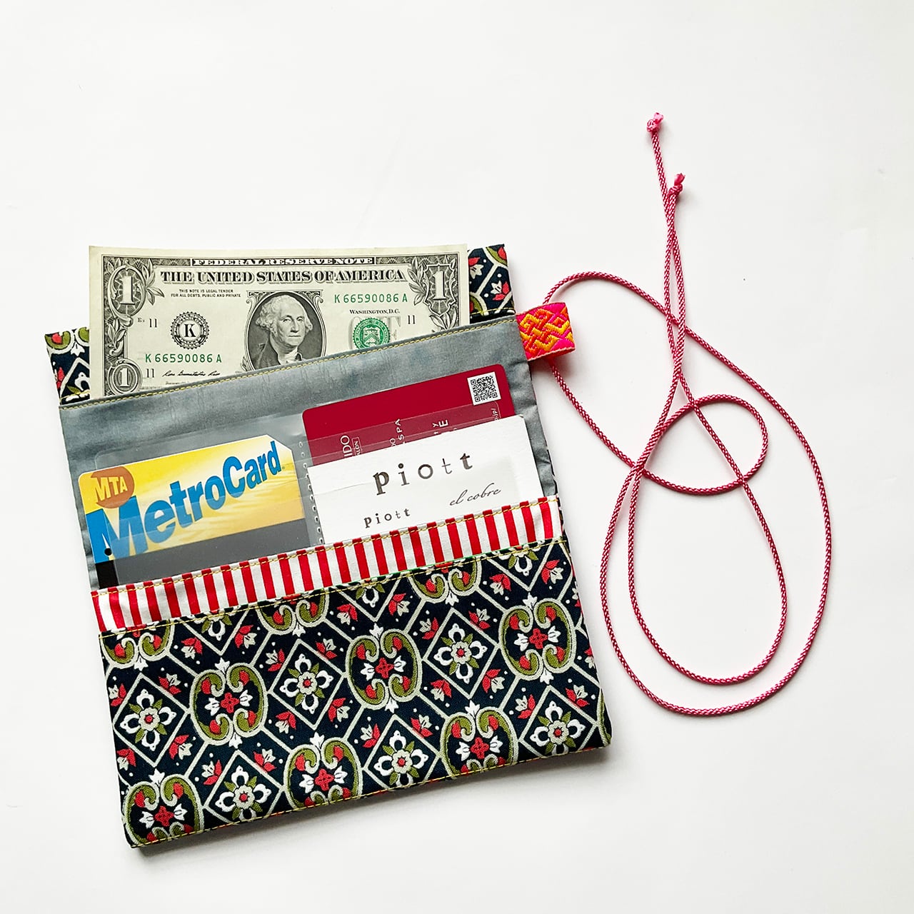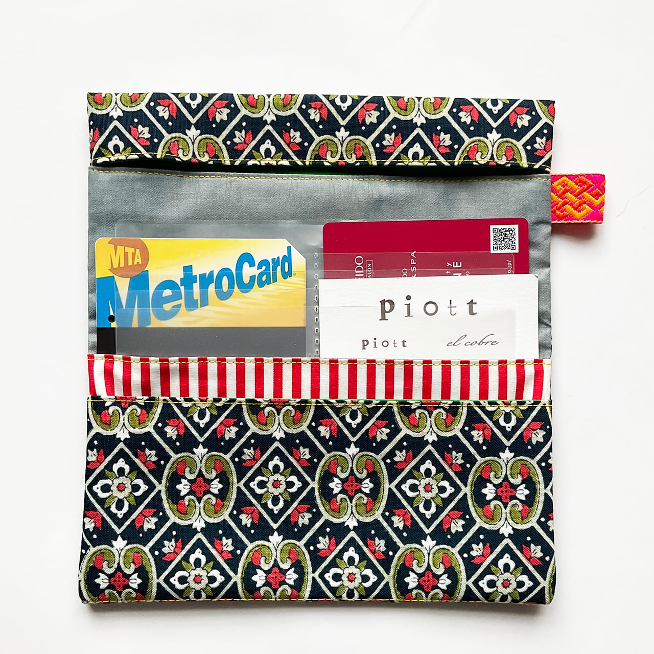 軽くて小粋な、シンプルで使いやすい布の札入れです。お薬手帳、へそくり管理にも。
