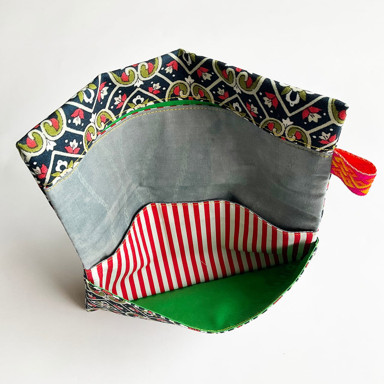 思い立ってデッドストックの布で色とりどりに作って使っていたら、「かわいい!どこで買ったの?私も欲しい!」「こういう軽い財布を探していたよ」とたびたび言われるようになりましたので、sawing club で作ってお裾分けすることにしました。