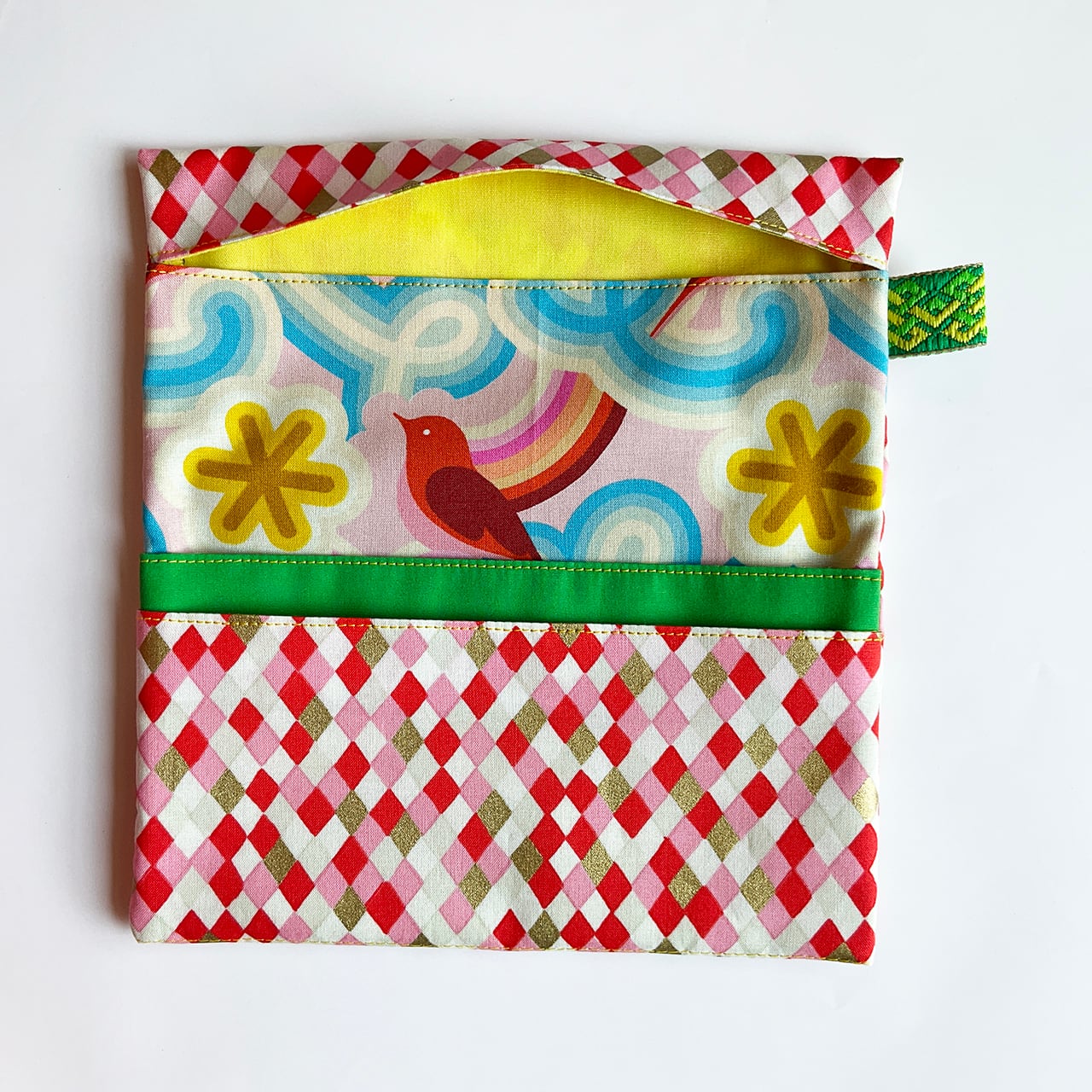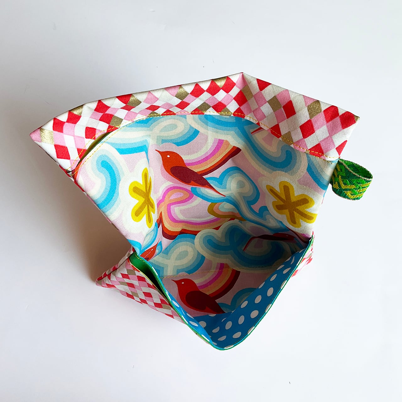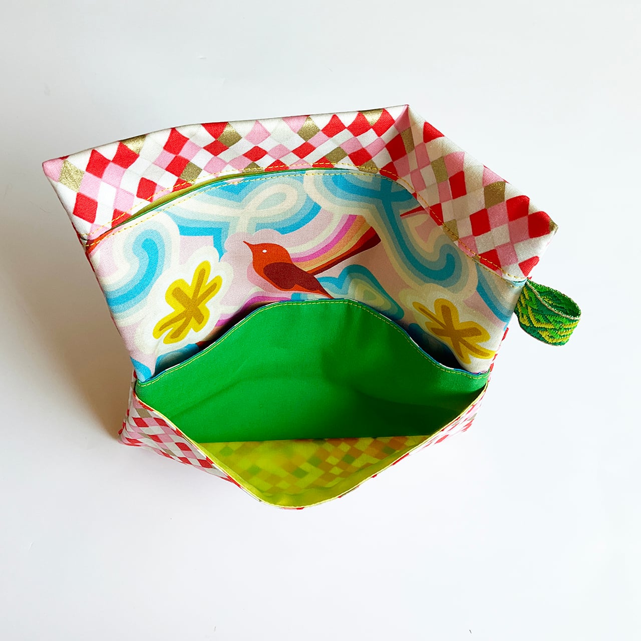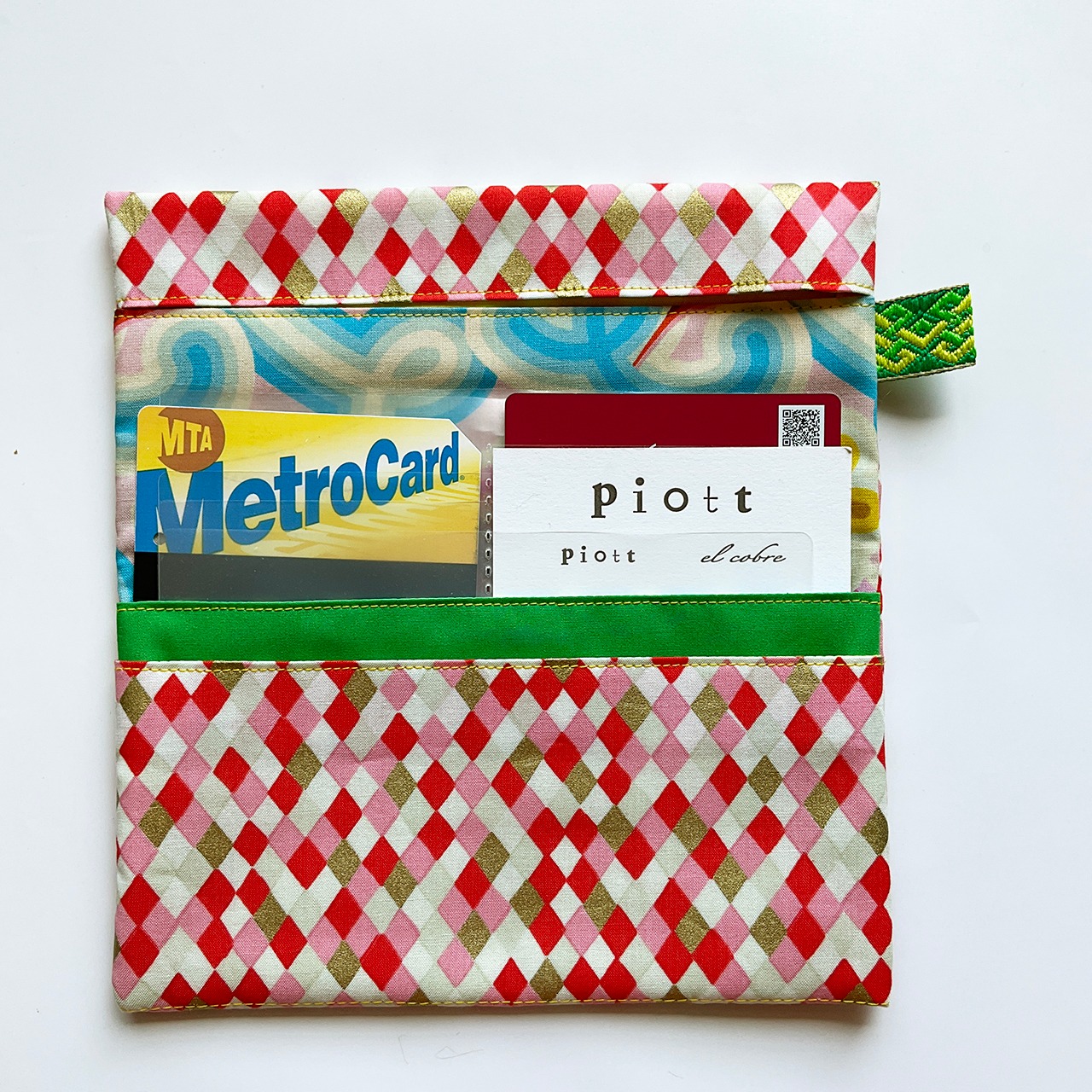 思い立ってデッドストックの布で色とりどりに作って使っていたら、「かわいい!どこで買ったの?私も欲しい!」「こういう軽い財布を探していたよ」とたびたび言われるようになりましたので、sawing club で作ってお裾分けすることにしました。