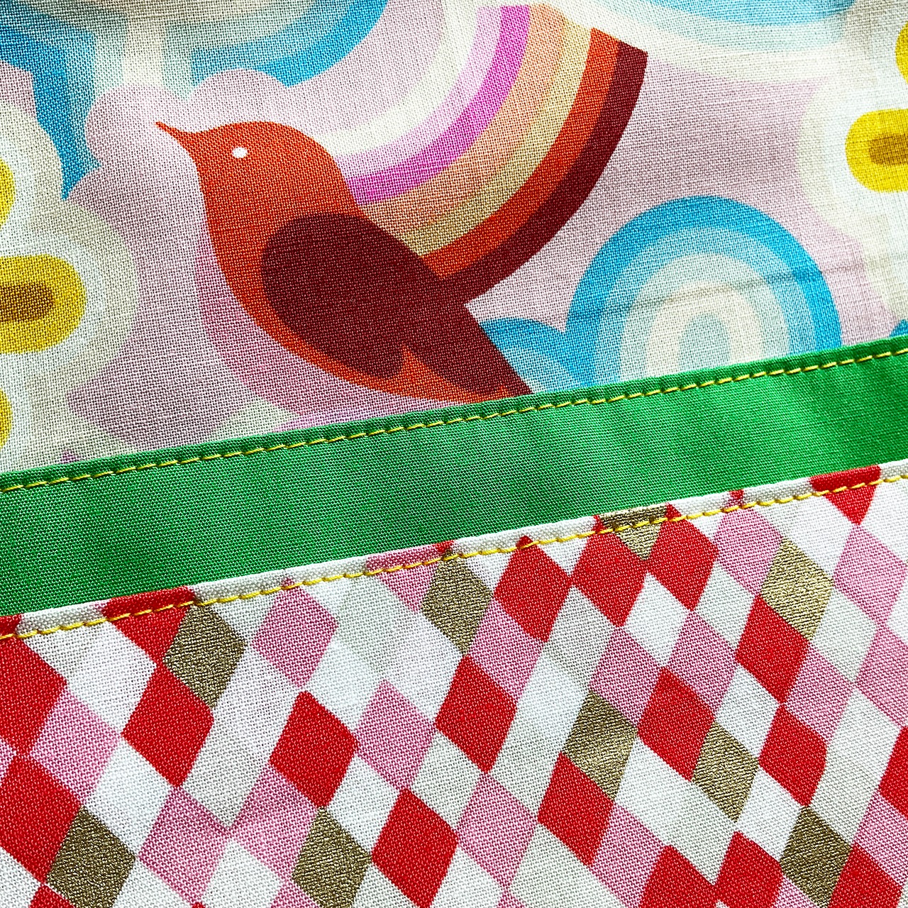 ・中布 サイケ鳥と青水玉のMIX/チラ見えライン 芝生緑/インナー レモン
