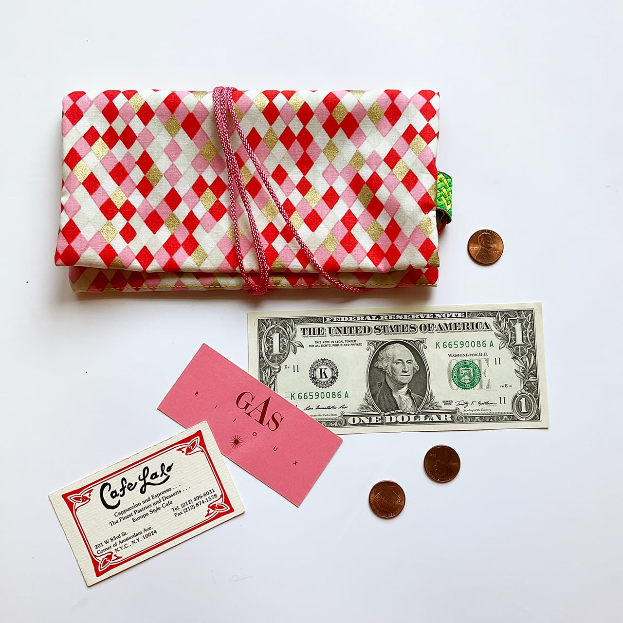 軽くて小粋な、シンプルで使いやすい布の札入れです。