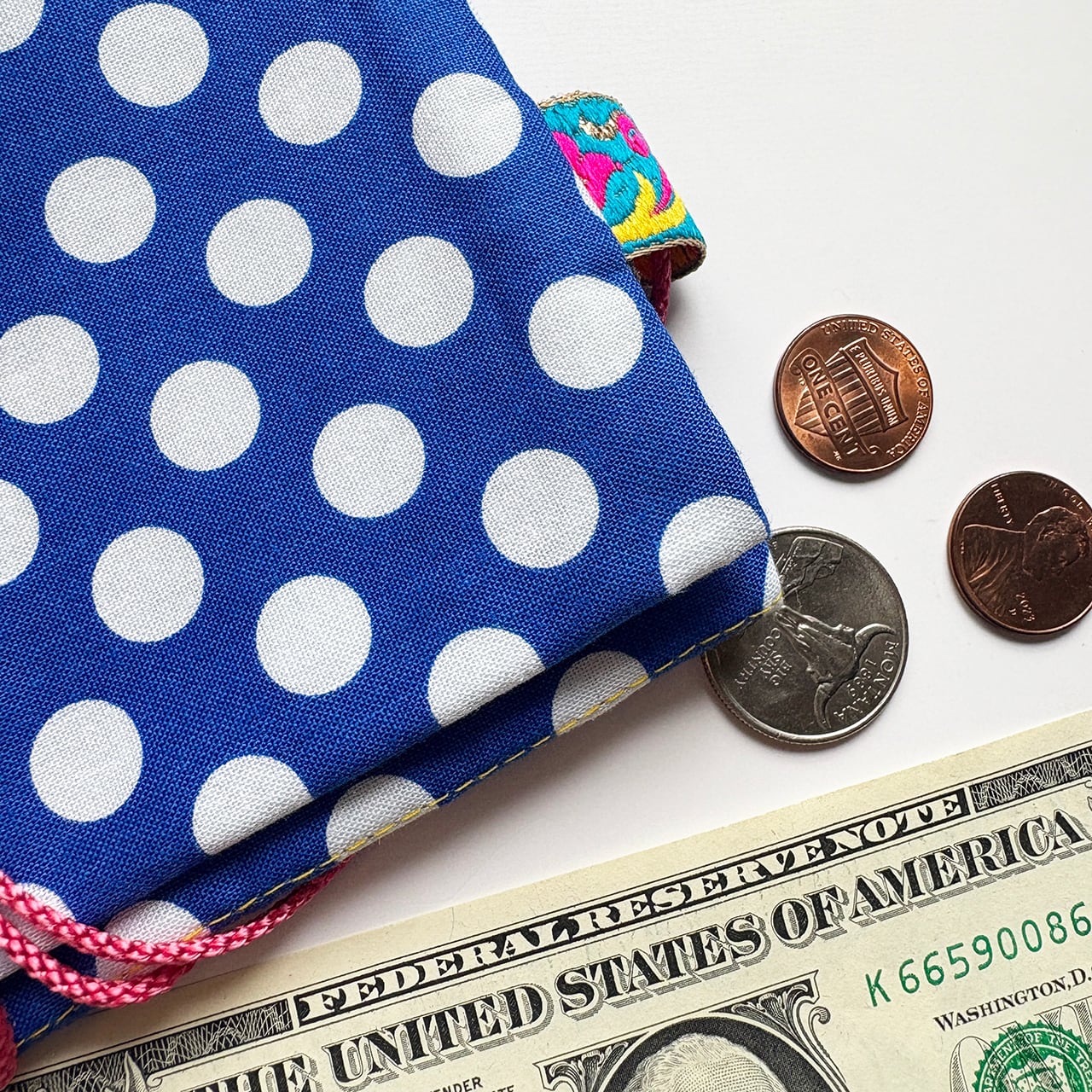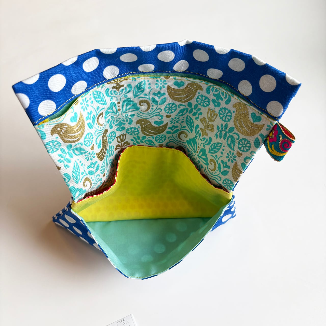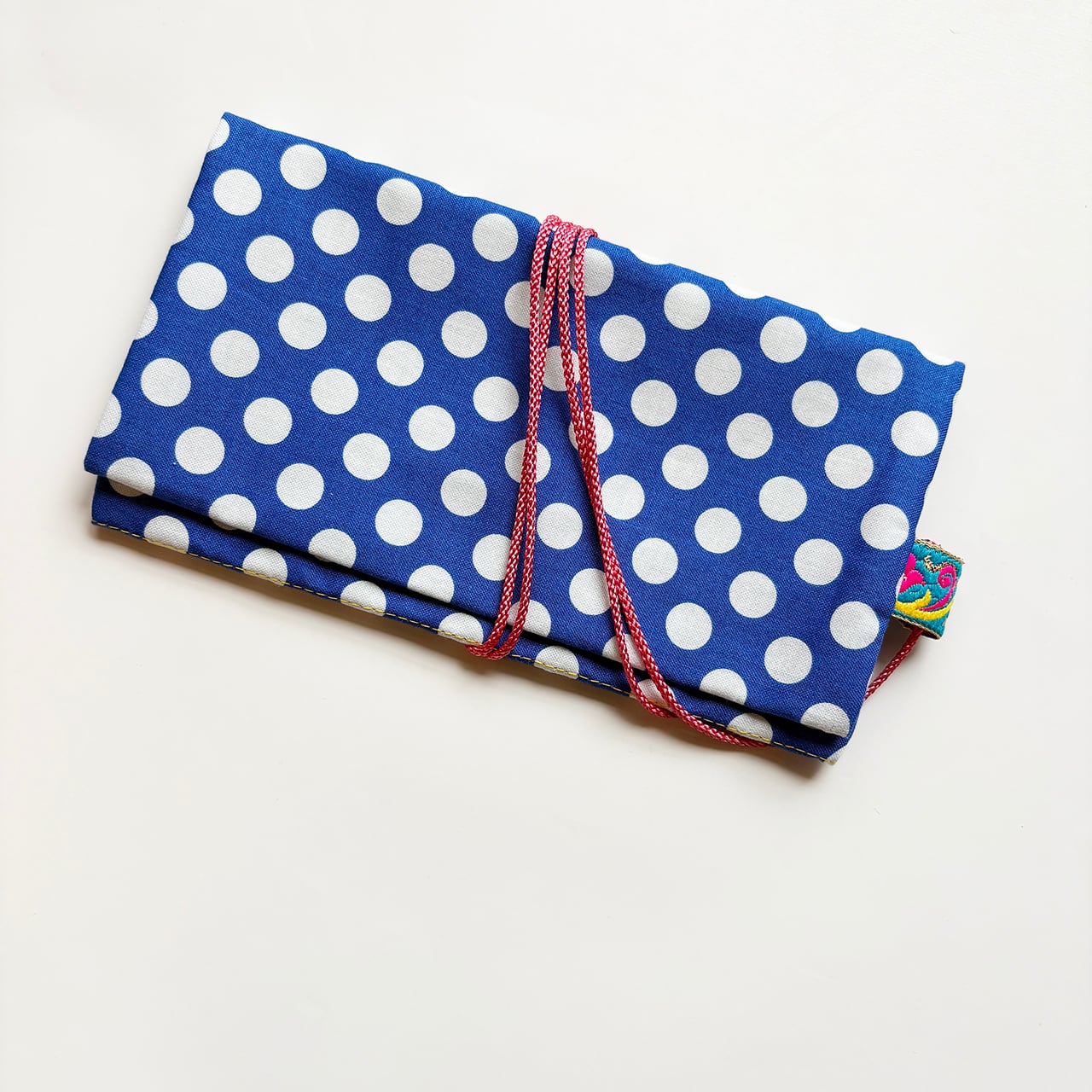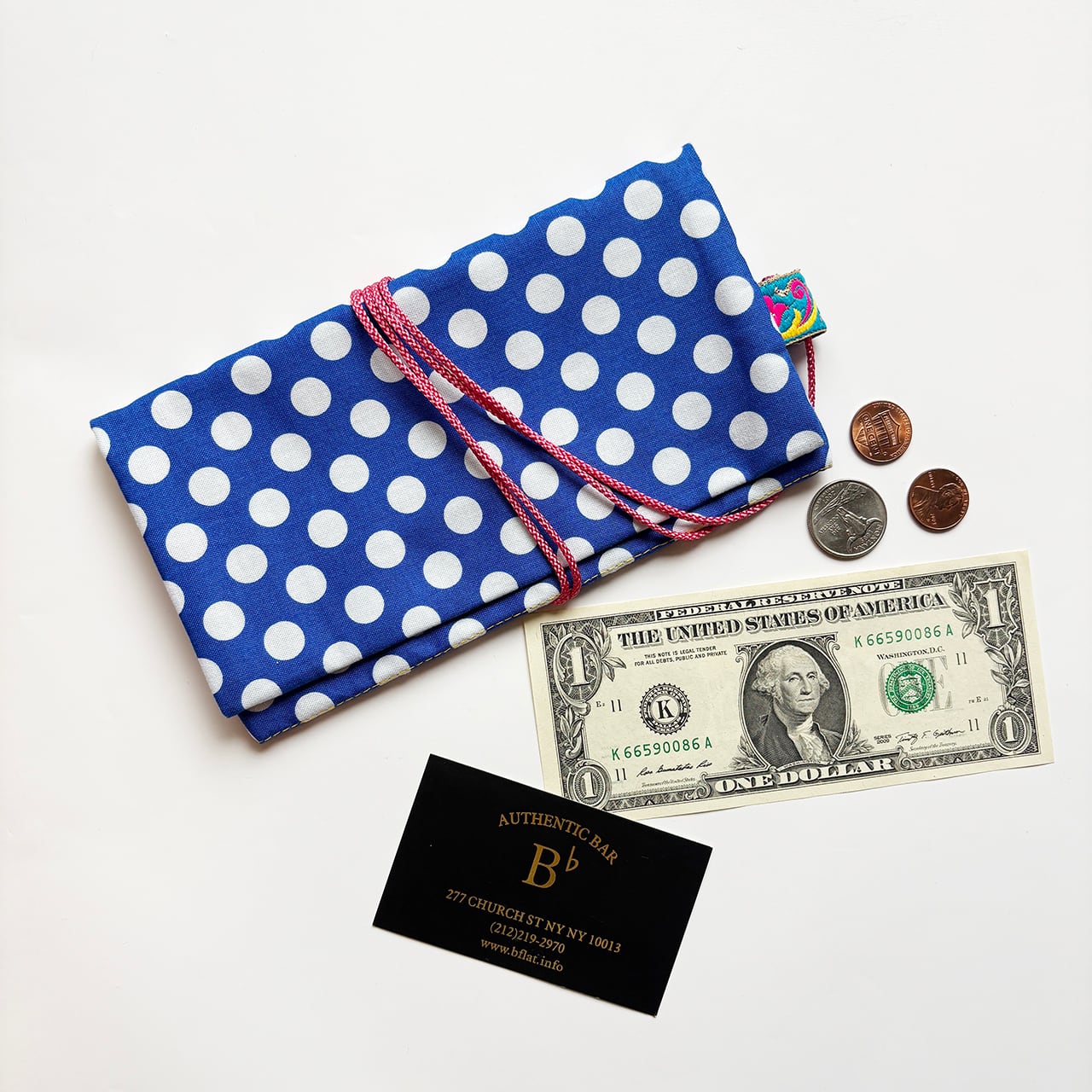 コバルト水玉に金の鳥 ハンドメイド-ヌノザイフ-16912-68
