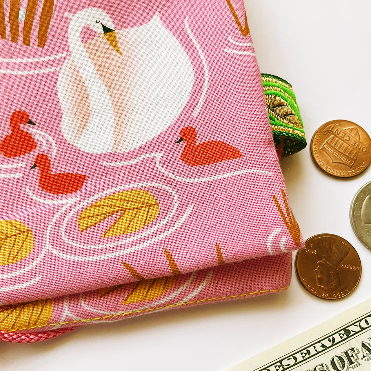 白鳥親子 桃色 ハンドメイド-ヌノザイフ-24012-88