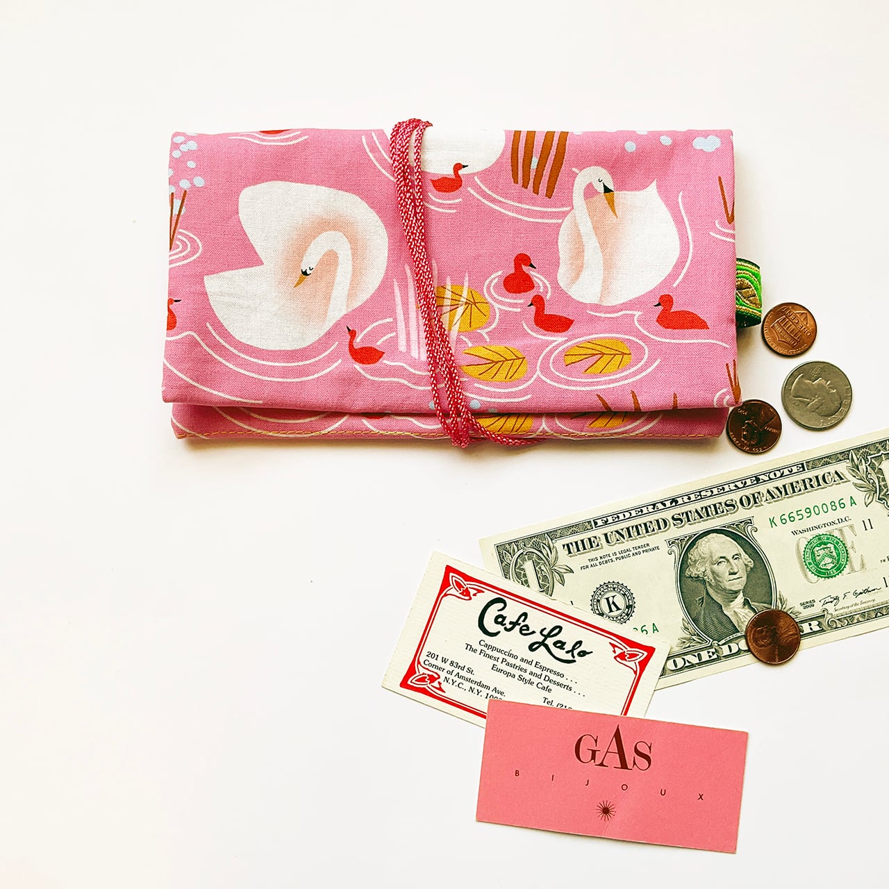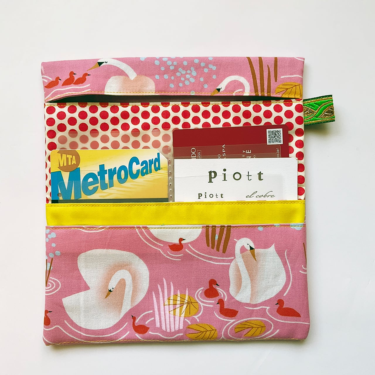 軽くて小粋な、シンプルで使いやすい布の札入れです。お薬手帳、へそくり管理にも。