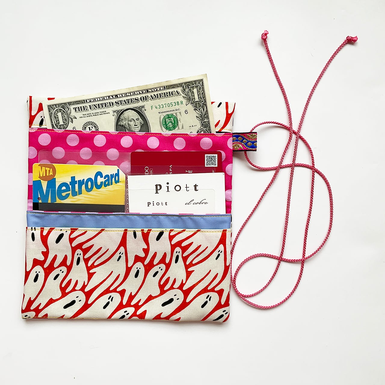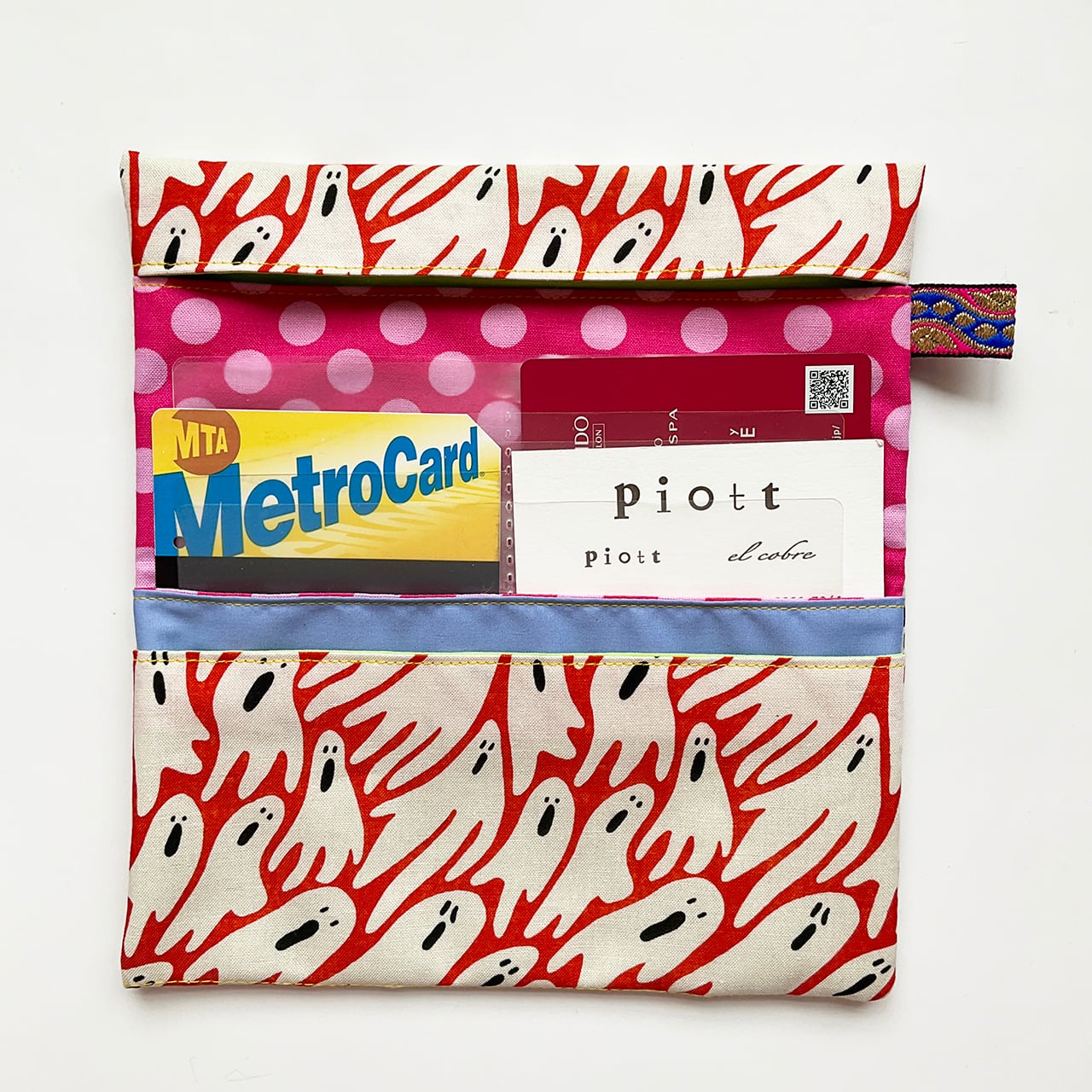軽くて小粋な、シンプルで使いやすい布の札入れです。お薬手帳、へそくり管理にも。
