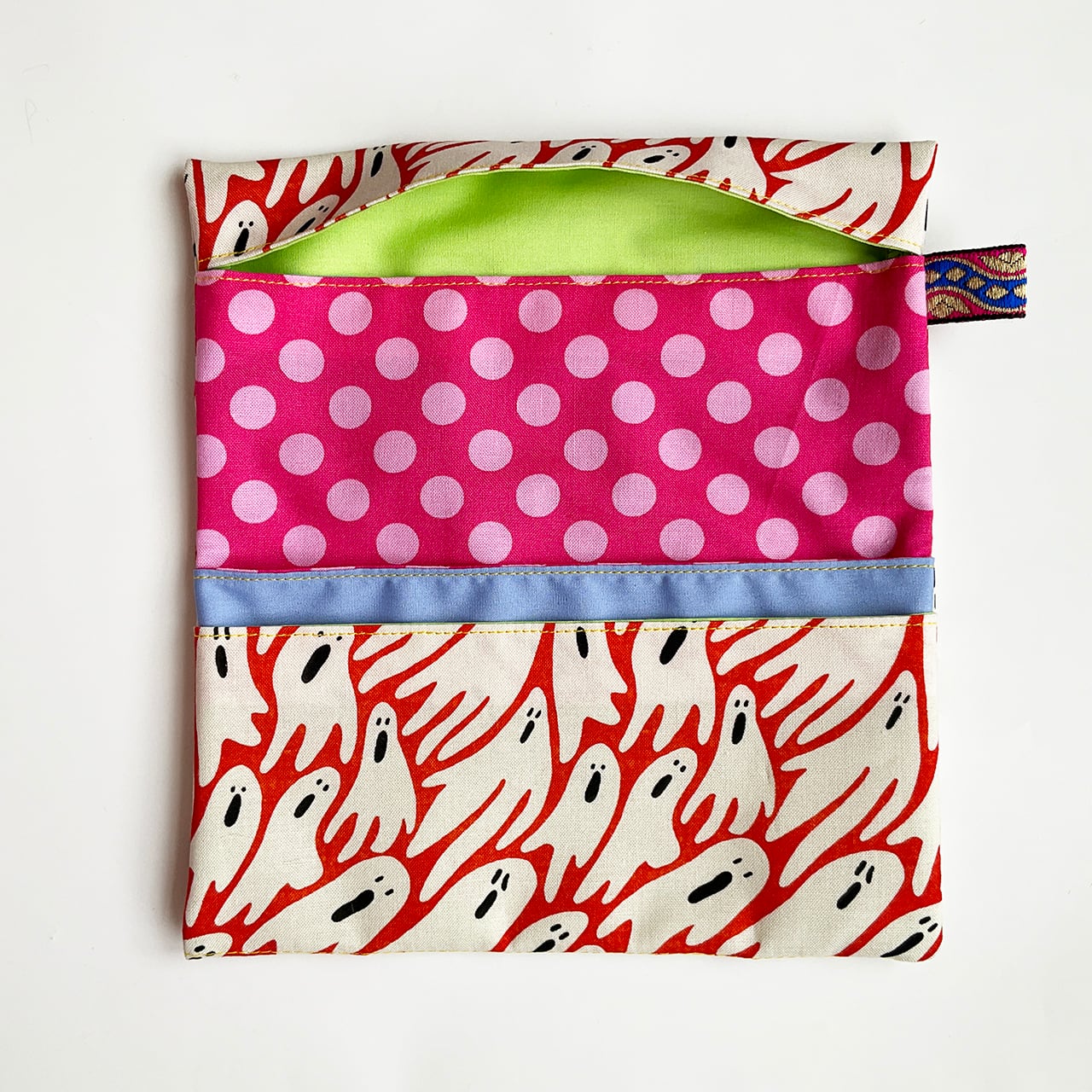思い立ってデッドストックの布で色とりどりに作って使っていたら、「かわいい!どこで買ったの?私も欲しい!」「こういう軽い財布を探していたよ」とたびたび言われるようになりましたので、sawing club で作ってお裾分けすることにしました。