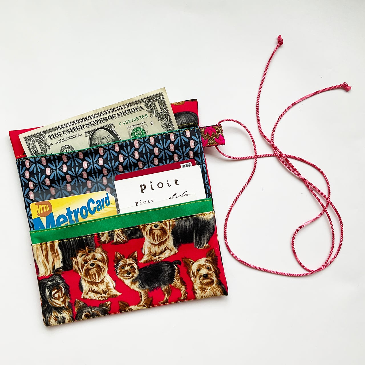 軽くて小粋な、シンプルで使いやすい布の札入れです。お薬手帳、へそくり管理にも。