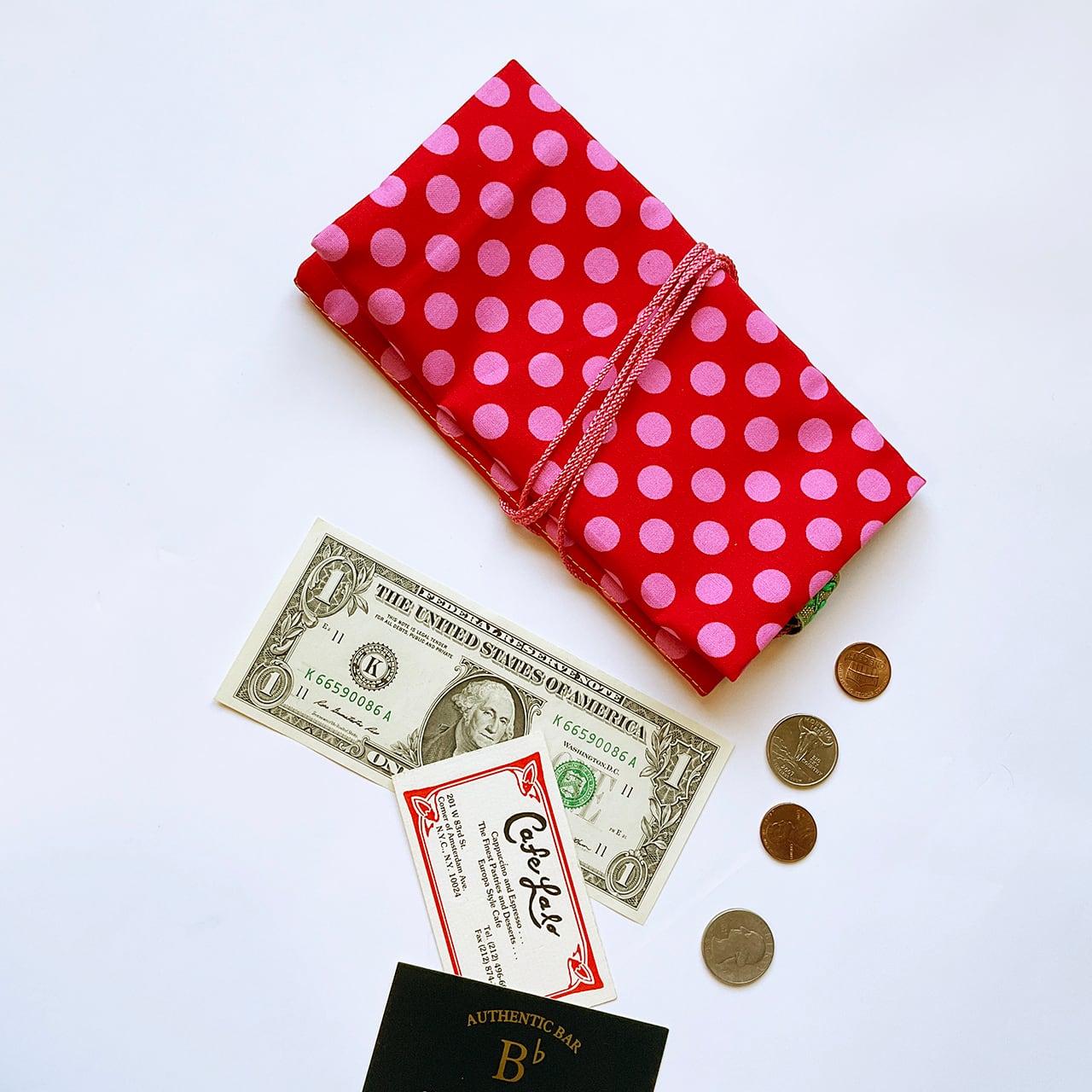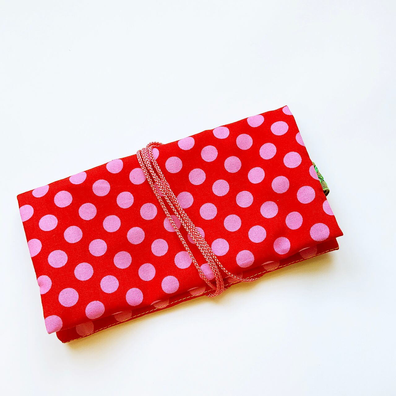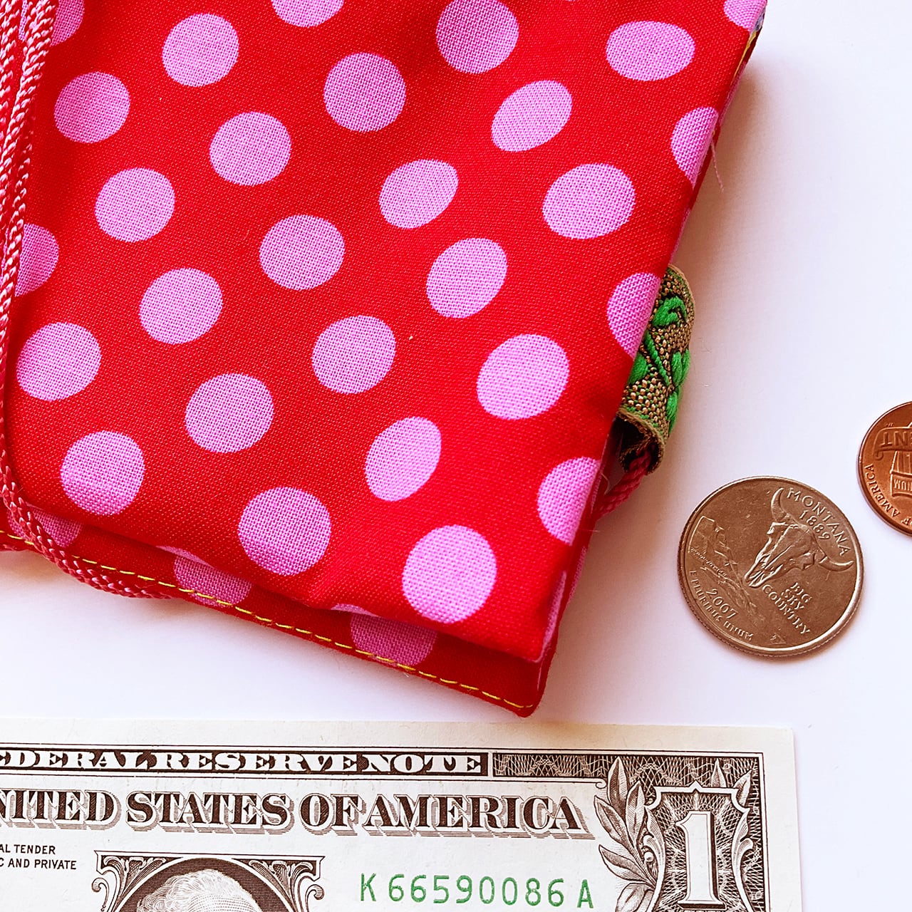 赤ネオンピンク水玉 ハンドメイド-ヌノザイフ-09013-07