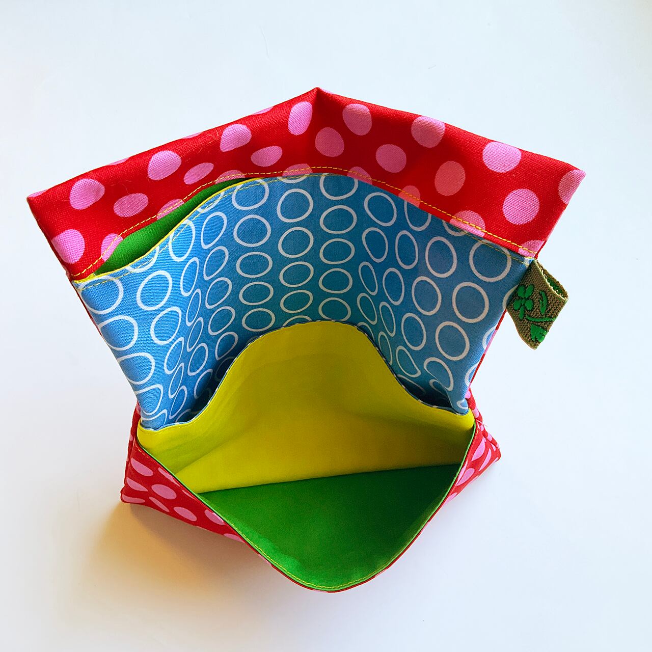思い立ってデッドストックの布で色とりどりに作って使っていたら、「かわいい!どこで買ったの?私も欲しい!」「こういう軽い財布を探していたよ」とたびたび言われるようになりましたので、sawing club で作ってお裾分けすることにしました。
