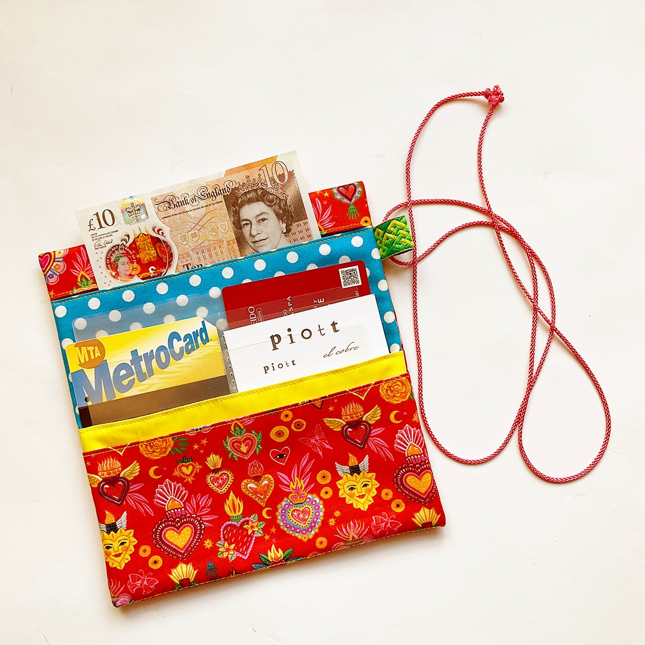 思い立ってデッドストックの布で色とりどりに作って使っていたら、「かわいい!どこで買ったの?私も欲しい!」「こういう軽い財布を探していたよ」とたびたび言われるようになりましたので、sawing club で作ってお裾分けすることにしました。