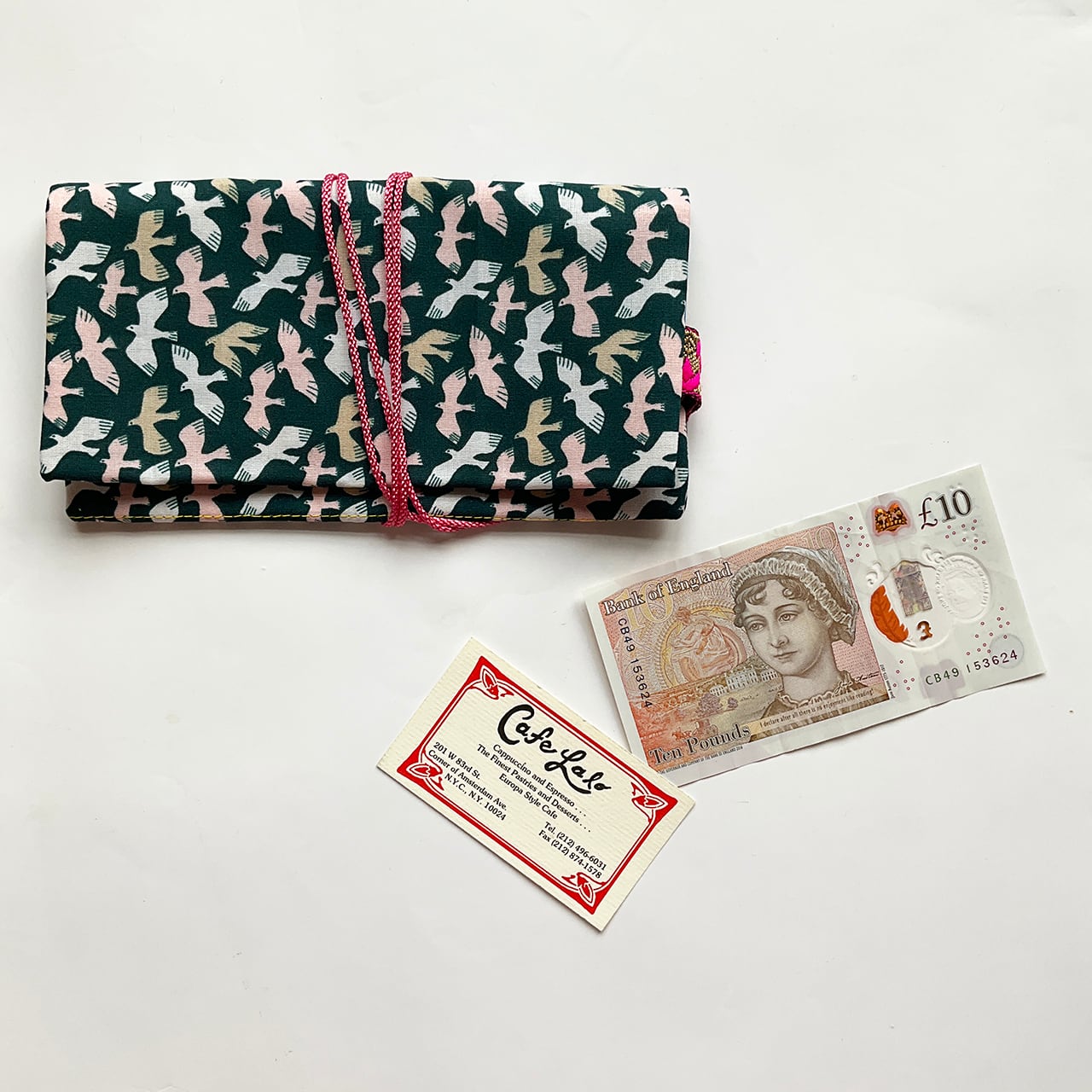 軽くて小粋な、シンプルで使いやすい布の札入れです。お薬手帳、へそくり管理にも。