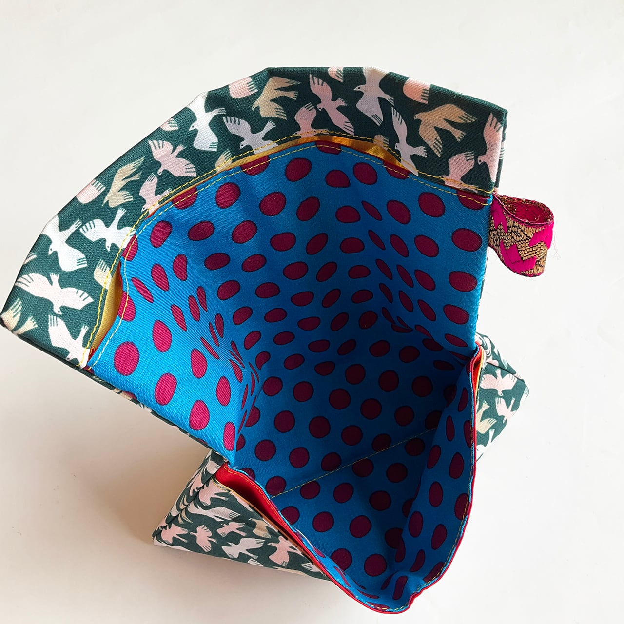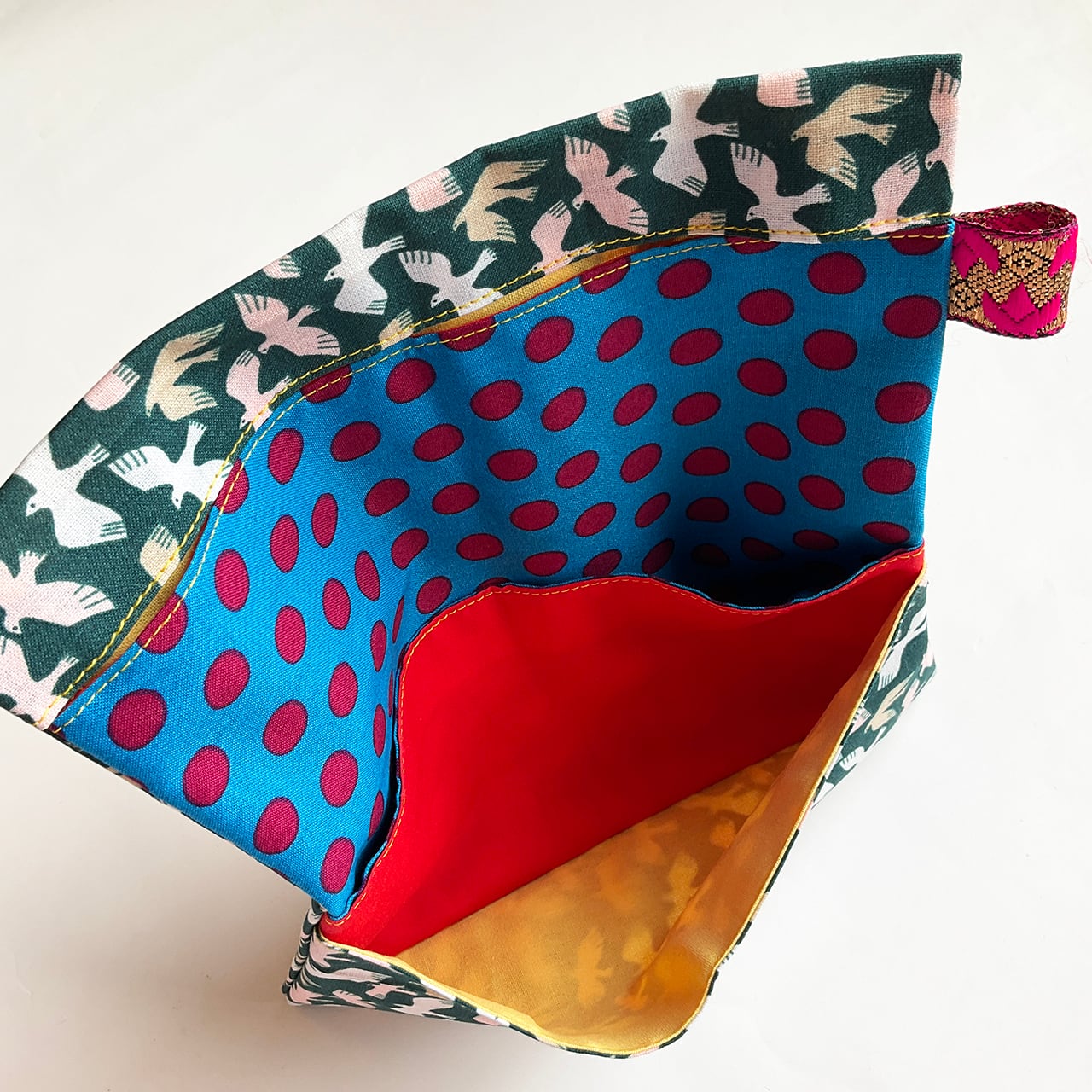 思い立ってデッドストックの布で色とりどりに作って使っていたら、「かわいい!どこで買ったの?私も欲しい!」「こういう軽い財布を探していたよ」とたびたび言われるようになりましたので、sawing club で作ってお裾分けすることにしました。