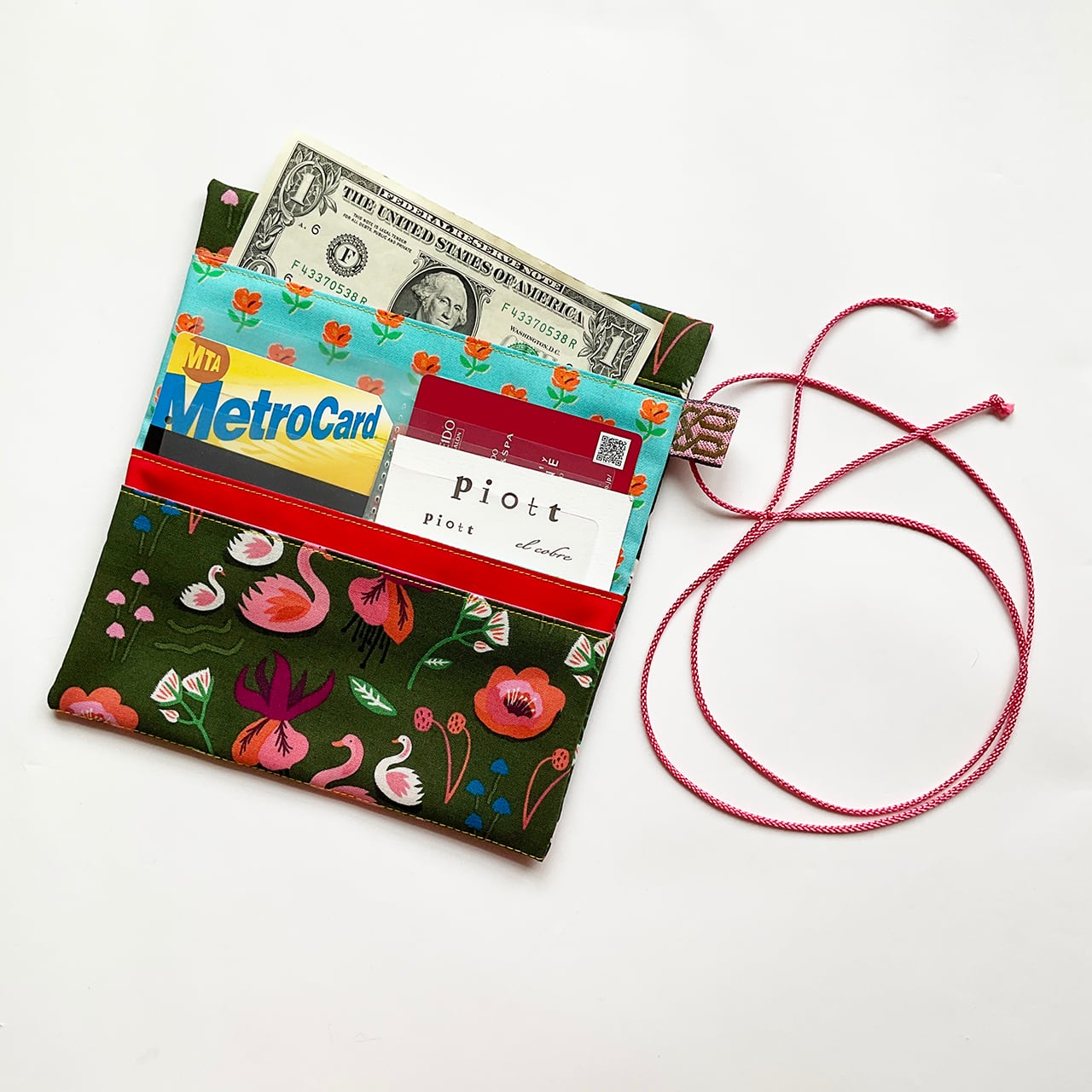 軽くて小粋な、シンプルで使いやすい布の札入れです。お薬手帳、へそくり管理にも。